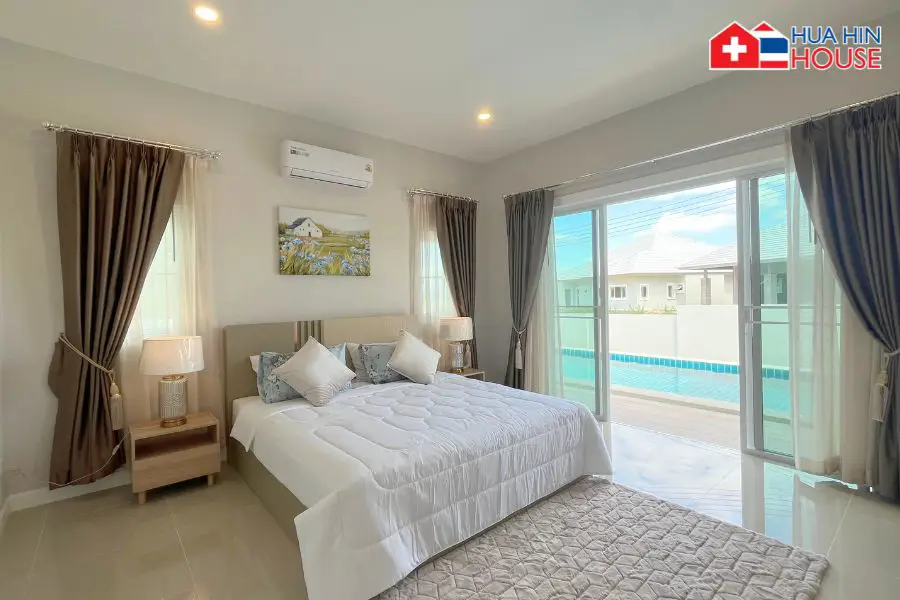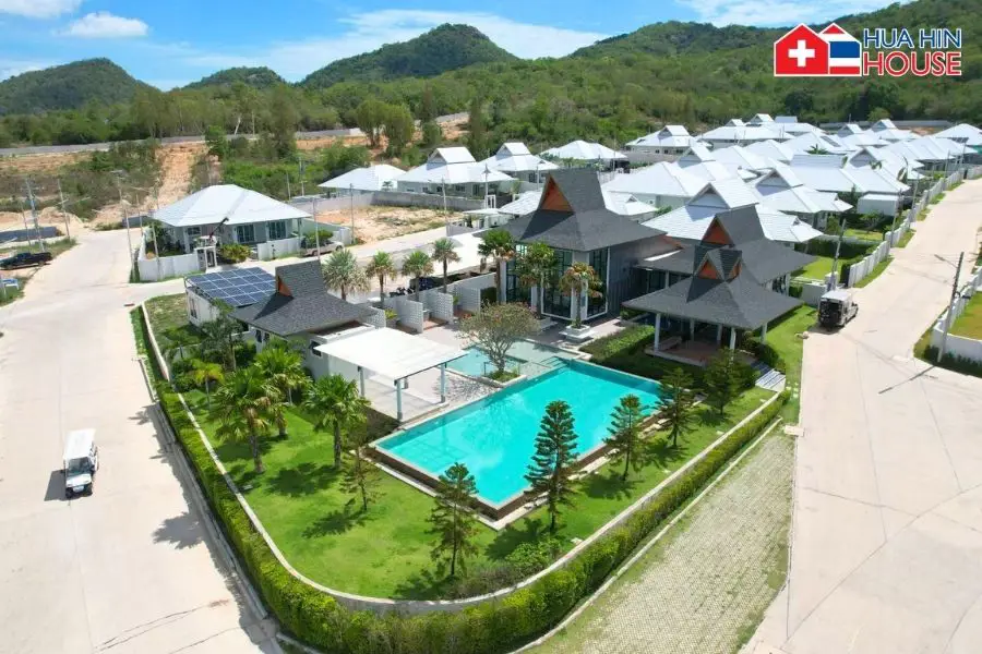 A modern residential development located in the serene Thap Tai area of Hua Hin,Thailand. This project offers a blend of contemporary ModernThai-style villas set against a backdrop of stunning mountain views. Perfect for those looking for a peaceful retirement retreat, combines comfort, privacy, and relaxation