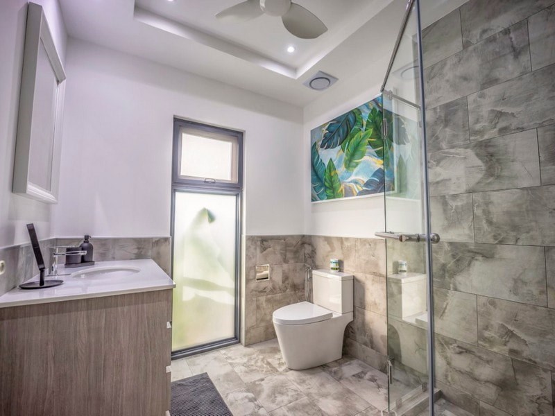 Master bedroom and bathroom located near the pool
