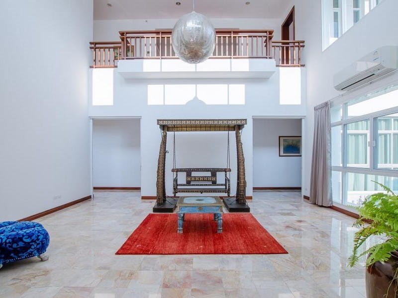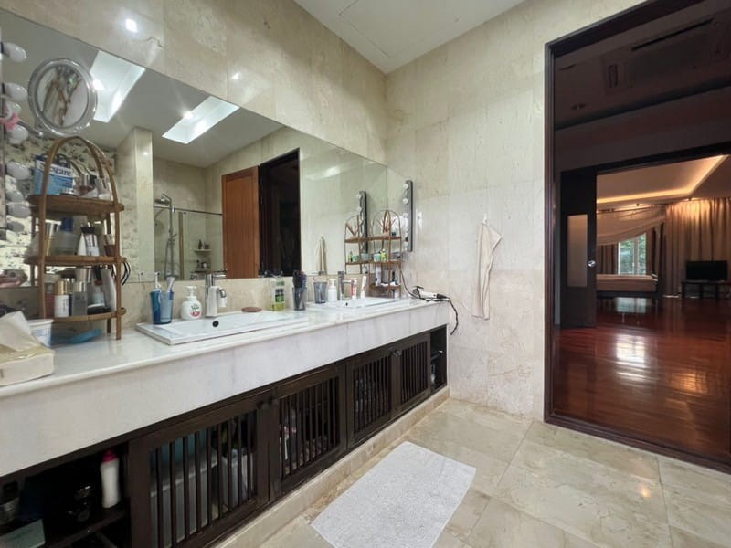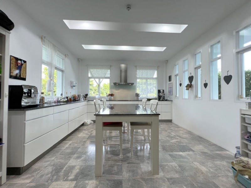 This luxury villa in Hua Hin is fully furnished and decorated and offers all the amenities you would expect from a property of this size. A special feature is the 16 solar panels on the roof, which improve the energy efficiency of the house. For your security, there are a total of 16 IPTV cameras guarding your villa in Hua Hin. The property consists of a total area of 5600m², of which 700m² is covered living space. Next to the main house, on the same plot but outside the perimeter wall, there is a small bungalow for the house staff.