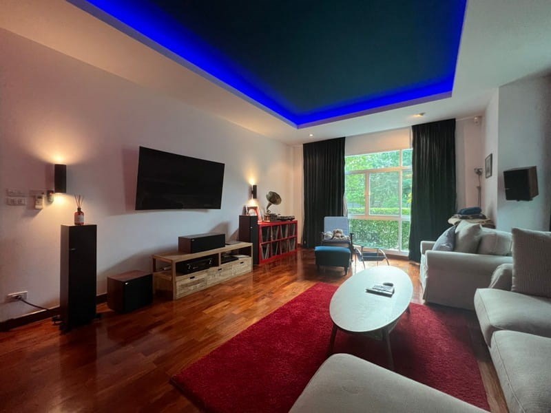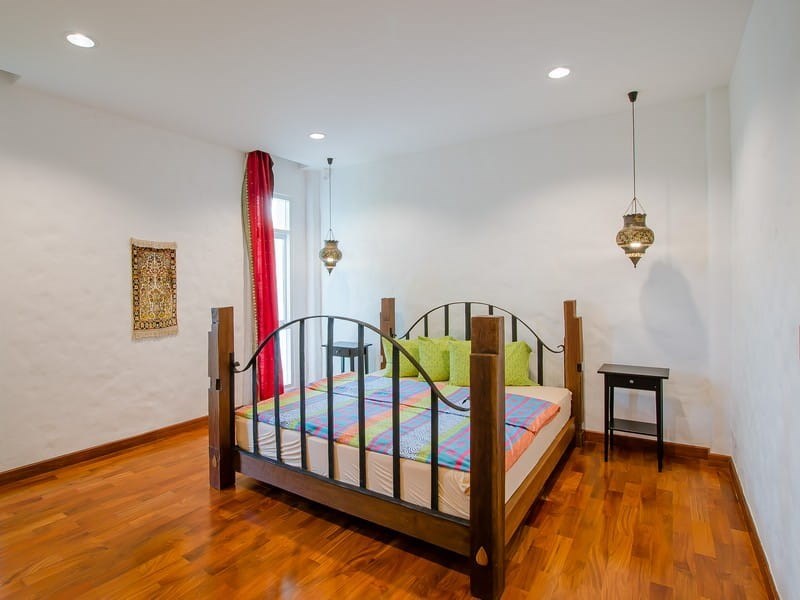 The four other bedrooms are on the ground floor and were built in different styles. One like a room from Morocco, another more Japanese to Thai style from a former century. The media room is also located on the ground floor.