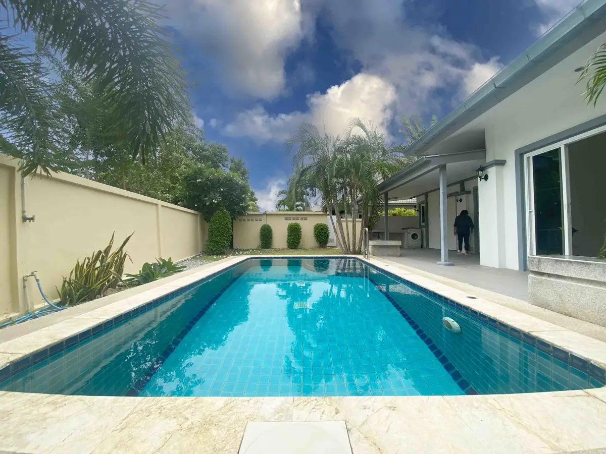Experience the pinnacle of luxury living at Emerald Resort, a prestigious villa project located just minutes from Hua Hin Town. This elegant 2-bedroom, 2-bathroom house features a private 4 x 6 meter swimming pool, European-style kitchen, and spacious living area of 125 sq.m. on a 320 sq.m. plot.