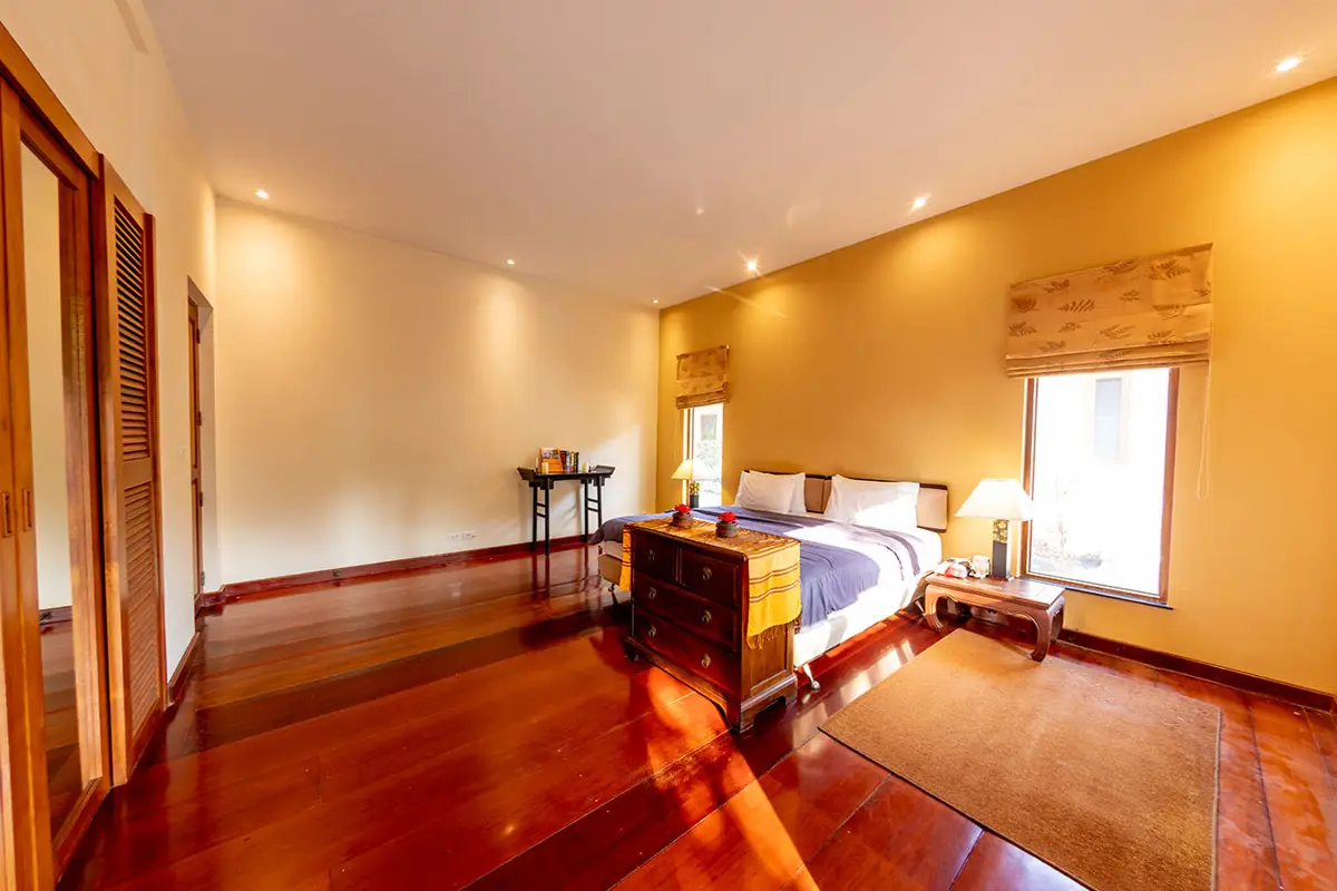 - Living Room: A grand space adorned with precious teak and redwood furnishings, exuding warmth and charm.