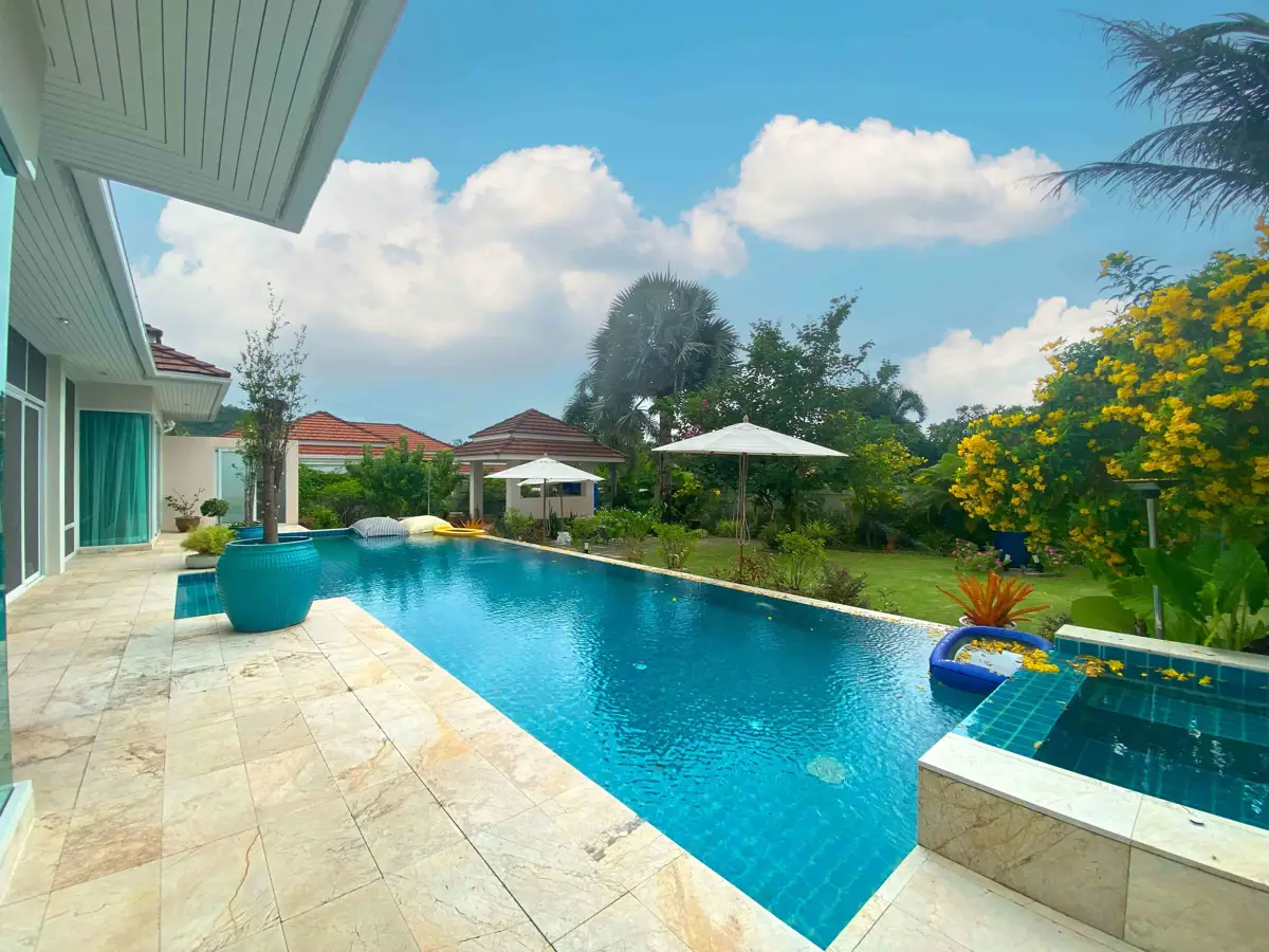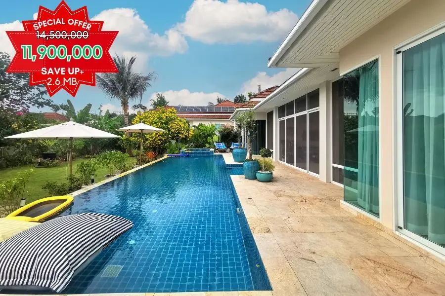 This villa offers a perfect blend of indoor and outdoor living, with ample space for relaxation and entertainment. Located in the prestigious Red Mountain area, just a short drive from Hua Hin town, it provides easy access to shopping, dining, and beaches.