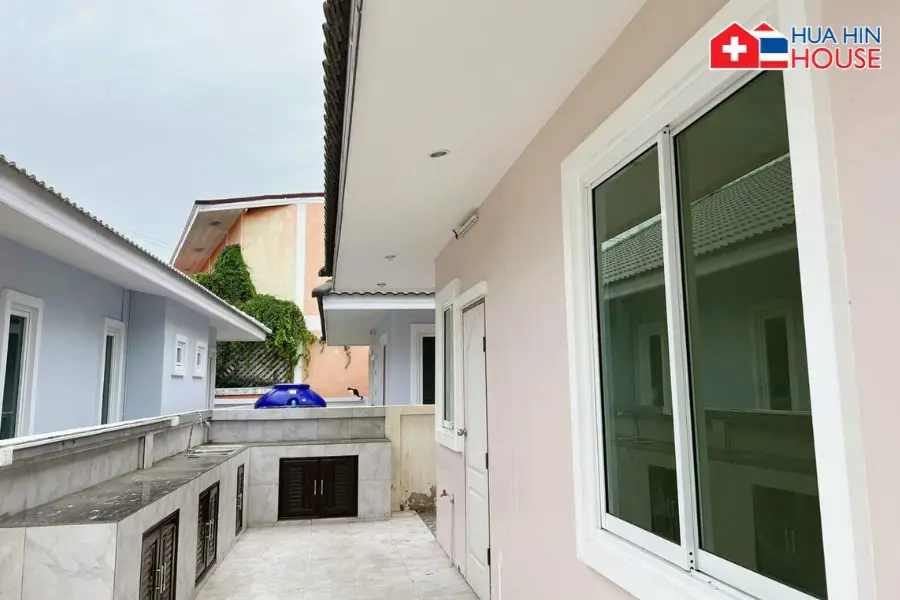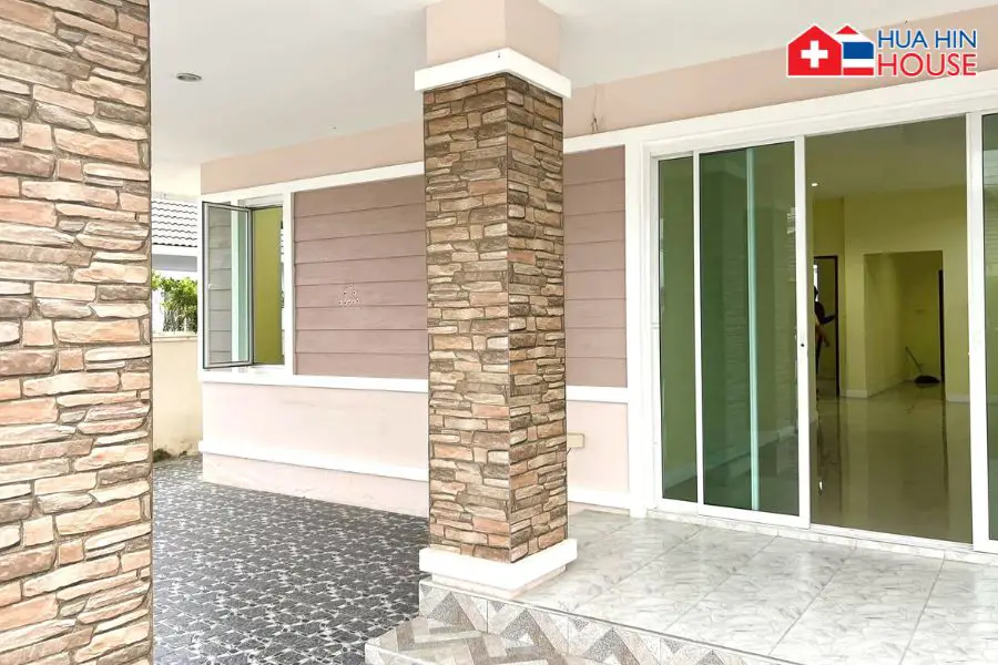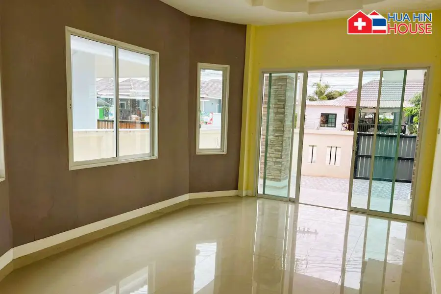 This charming detached house is located in the serene and peaceful area of Cha-am, just a few minutes away from the beach. The house is perfect for a small family or a couple looking for a quiet getaway. It features a spacious open-plan living and dining area, with large windows allowing plenty of natural light.