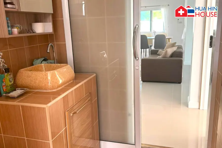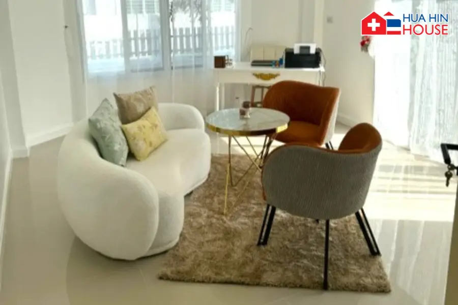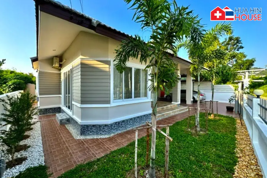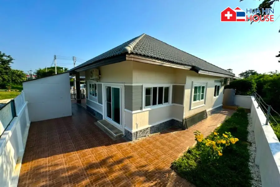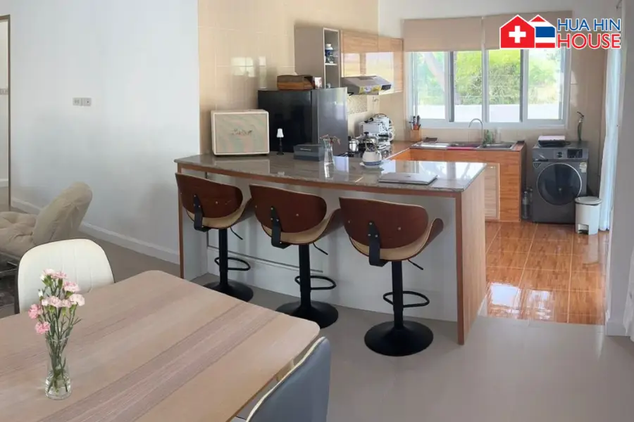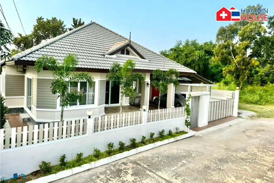 The location is ideal: the house sits between Hua Hin and Cha-Am, in a quiet yet well-connected area. Makro supermarket and the airport are just 5 minutes away, while the Hua Hin Hospital can be reached in approximately 7 minutes. Situated near the "Canal Road"—a less busy main traffic route connecting Hua Hin and Cha-Am—you'll enjoy excellent access without any noise disturbance.