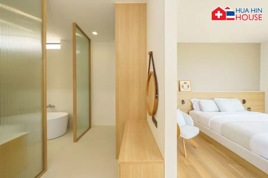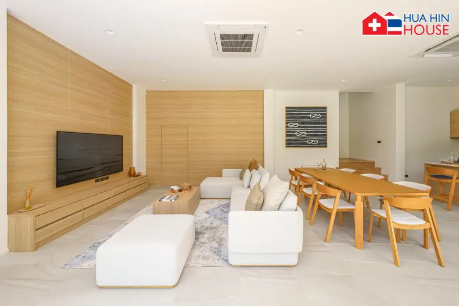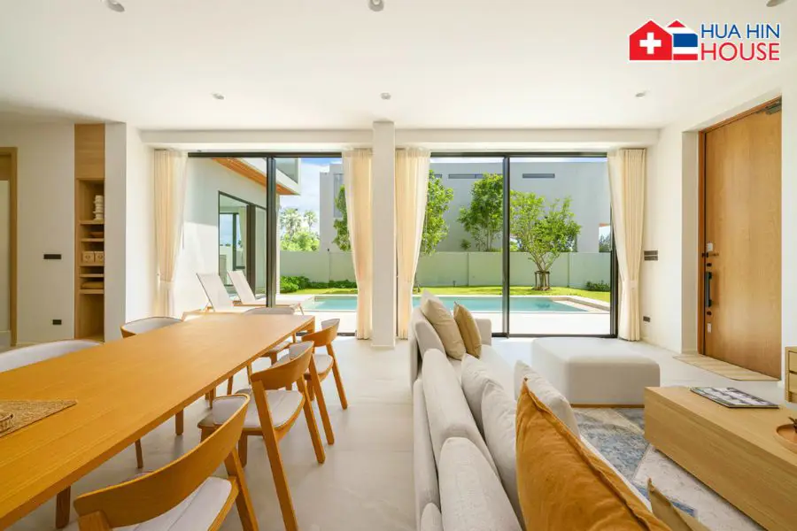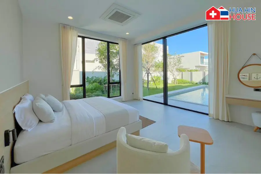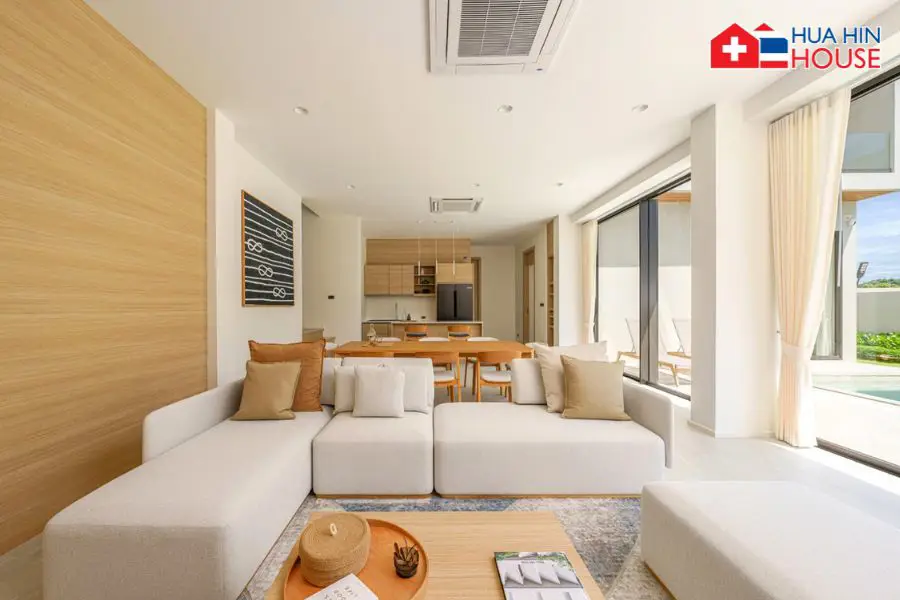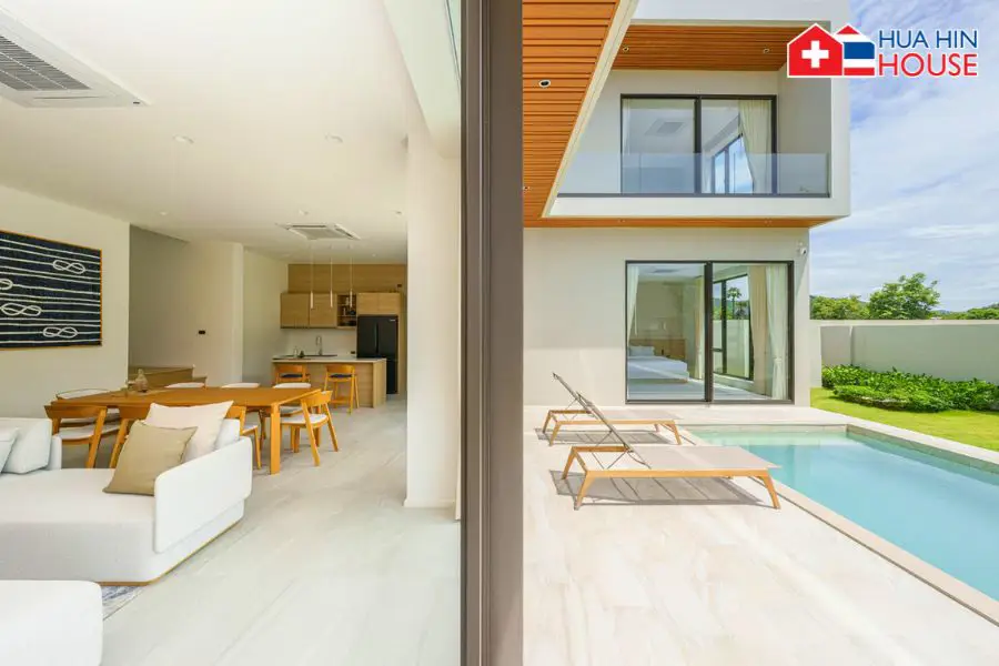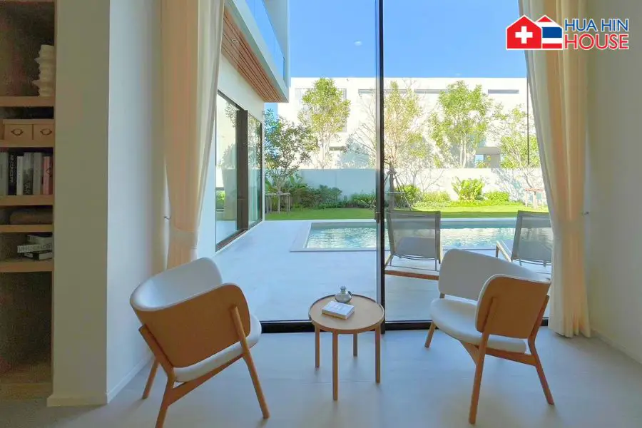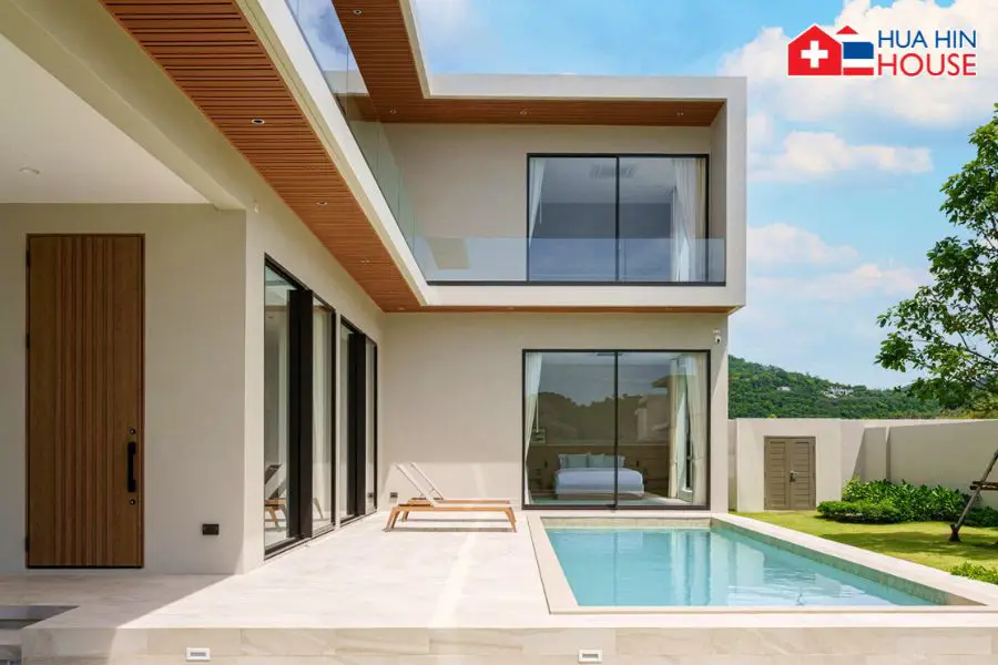 Khao Tao Privacy Residences. Located in the best area of Hua Hin, near the sea and Khao Tao Reservoir, you can experience and live close to nature—beaches, the sea, surrounded by mountains, and the scenic reservoir. These modern-style homes are fully furnished, ready to move in, and designed with spacious interiors that cater to every lifestyle for all family members. Each property features a private swimming pool on a large plot of land, enhancing privacy for all your activities. Detail Khao Tao offers the ultimate privacy with only 11 families in the community.