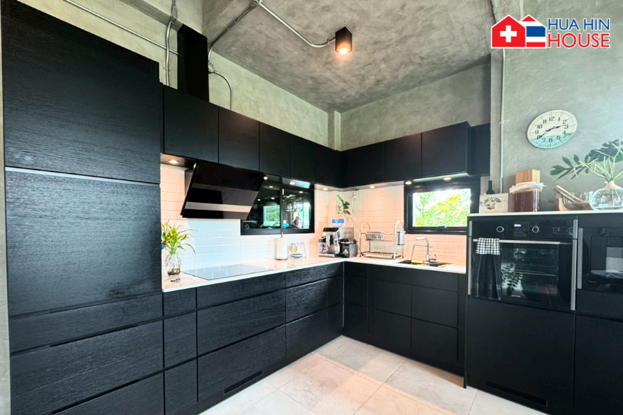 Beautifully designed 2-storey home with 4 bedrooms and 3 bathrooms. Fully furnished with top-quality materials and modern luxury design. Features a built-in European kitchen with premium appliances and an additional fully equipped Thai kitchen for functional daily use. -