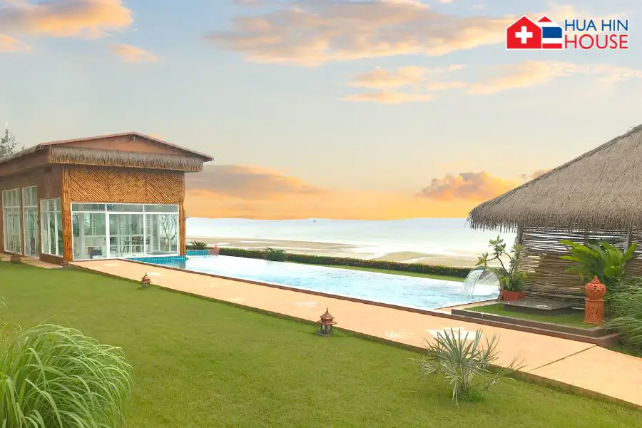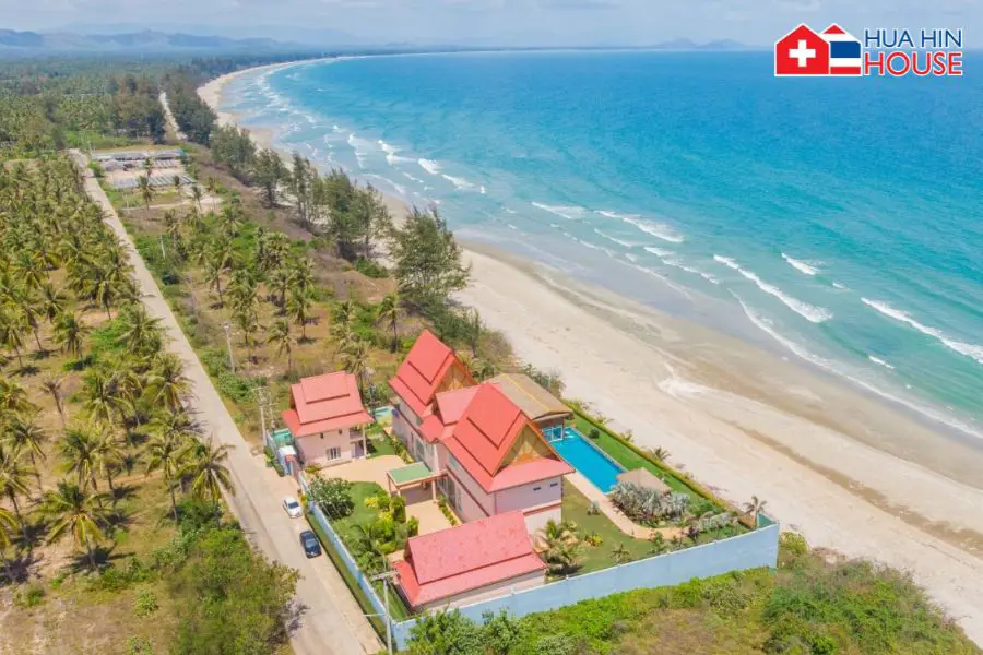 A rare opportunity to own a stunning beachfront villa in Bang Saphan Yai, located along a pristine 25 km stretch of white sand beach, just 2 hours south of Hua Hin.