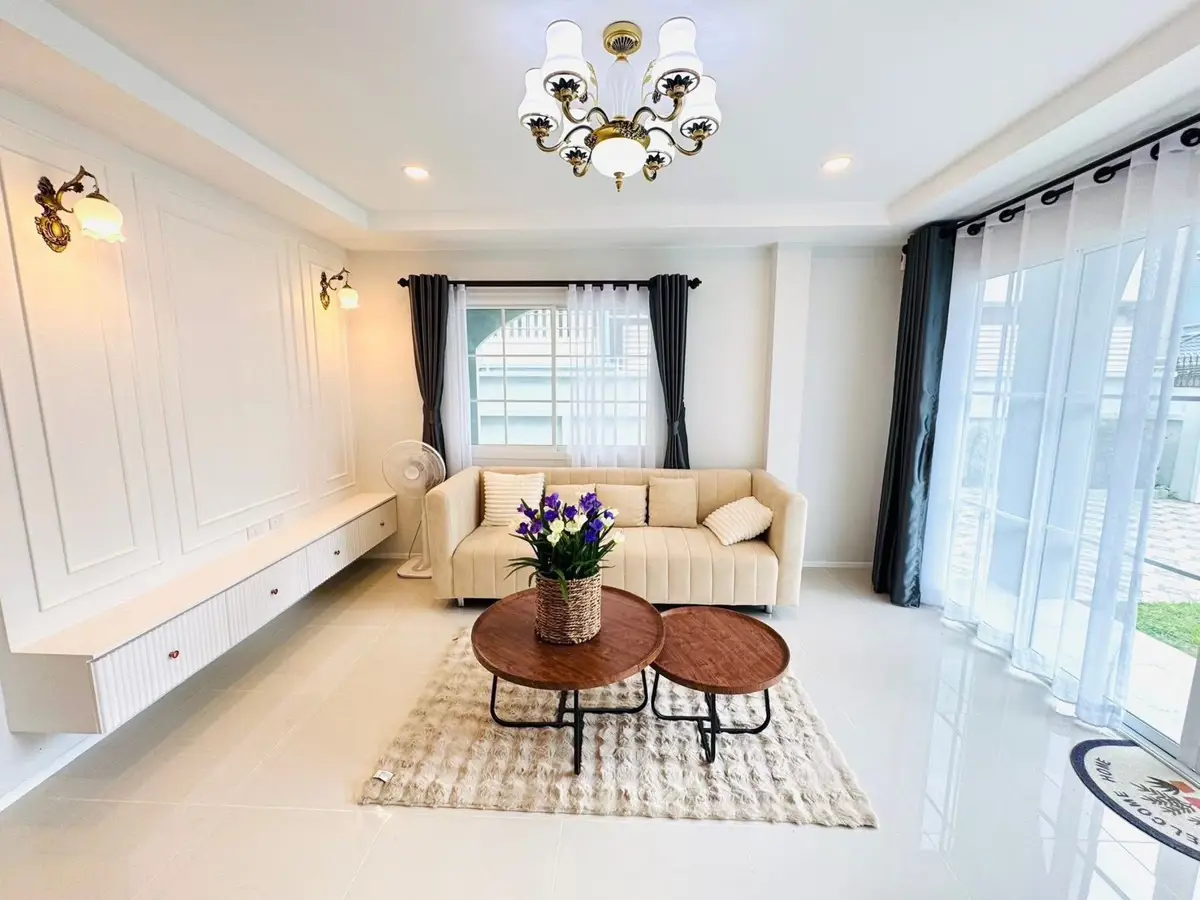 Looking for a large and comfortable family home in Banglamung? This impressive 2-story residence offers a generous 240 sq.m. of living space, featuring 4 bedrooms, 3 bathrooms, a well-appointed kitchen, and the convenience of being fully furnished. With 3 parking spaces and a desirable location, this property is ready for you to move in and enjoy!