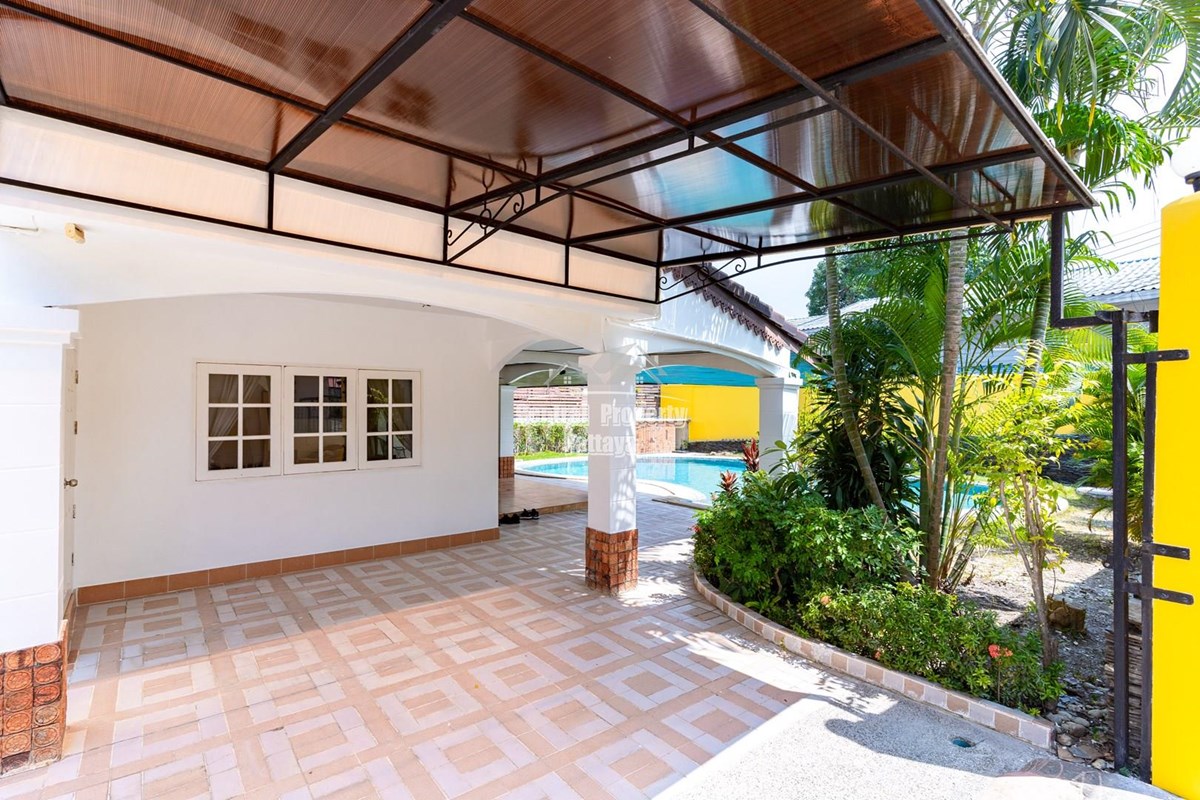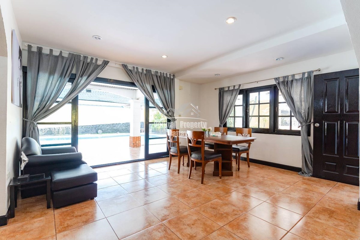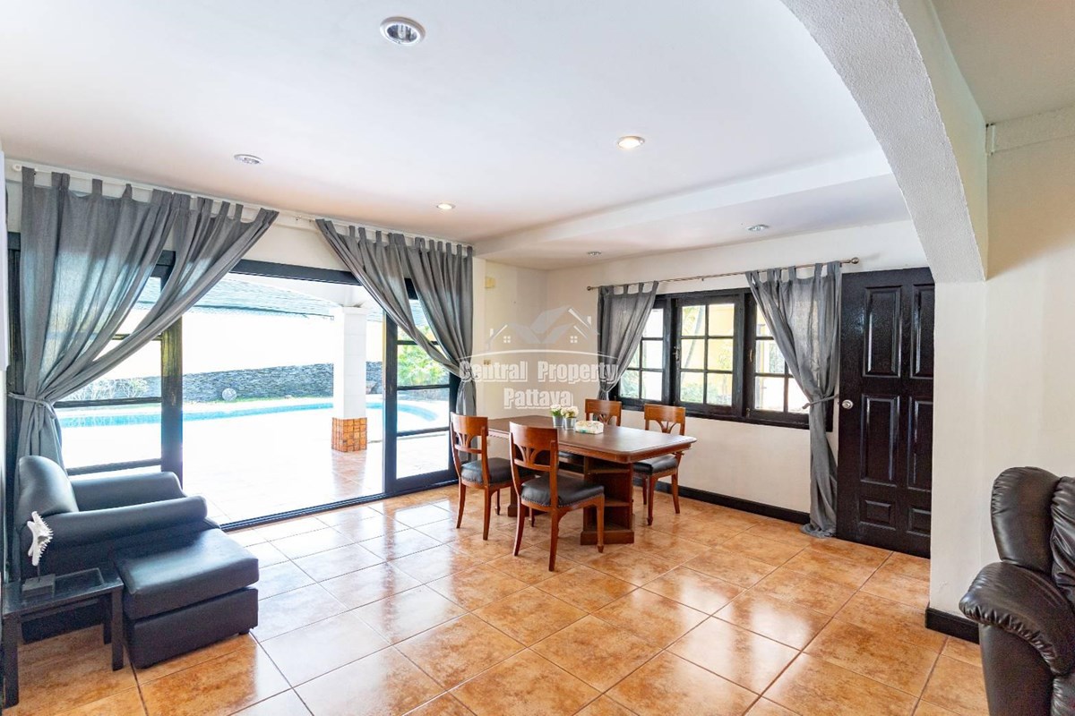 Beautiful Detached House with Large private swimming pool On Thappraya Road For sale. Land area size 400 sqm with 4 bedrooms, 3 bathrooms, living room, Patialy furnished, European Kitchen with Large private Swimming pool. Quiet residential area close to taxi route.Easy access to Jomtien and Pattaya and Only 10 Minutes walk to Jomtien Beach.