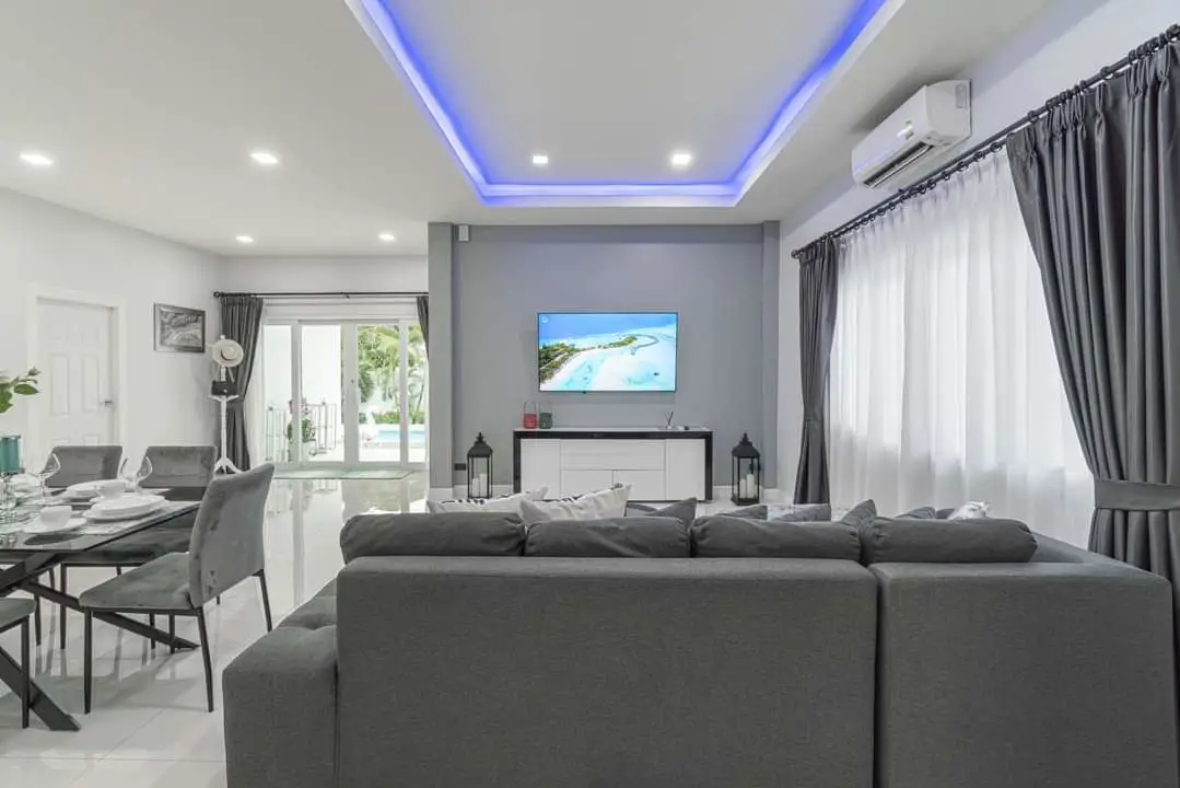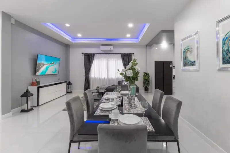 The entire property has been thoughtfully designed, including recessed ceilings with concealed lighting, adding a touch of modernity.