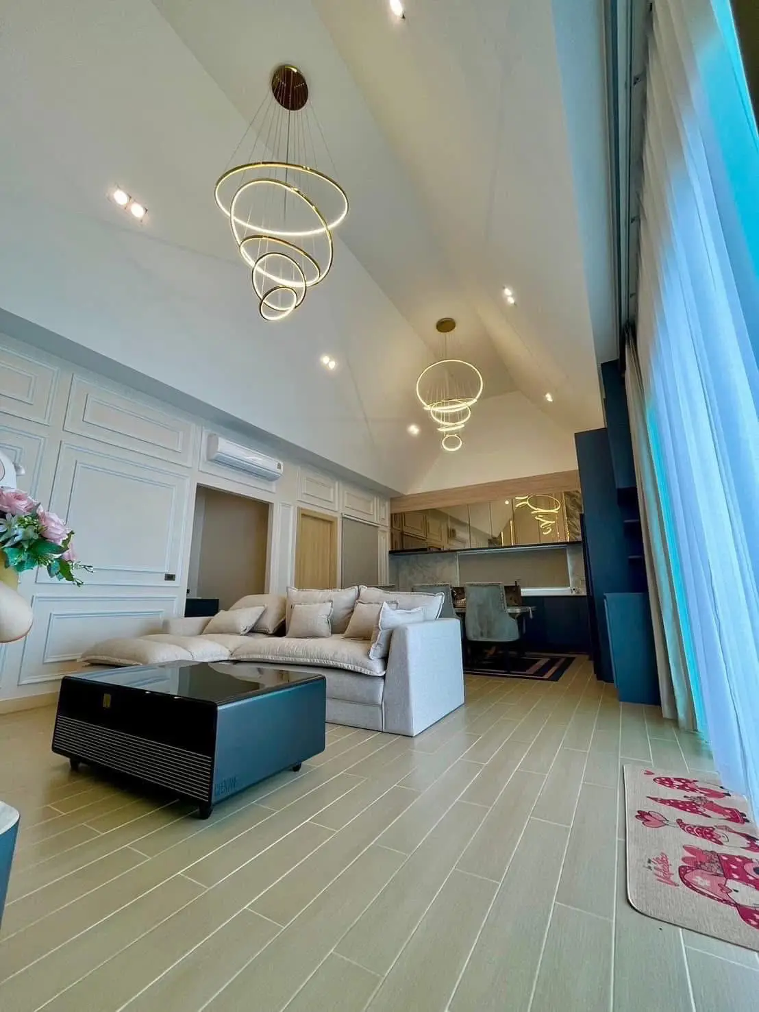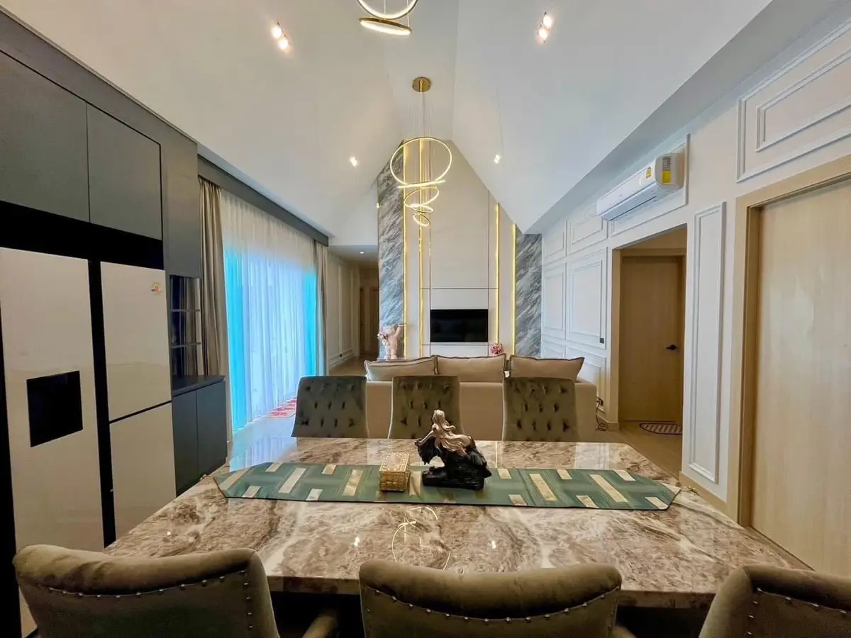 3 bedrooms, 4 bathrooms, separate kitchen, 2 zones, Thai-European, parking space inside the house for up to 3 cars