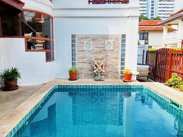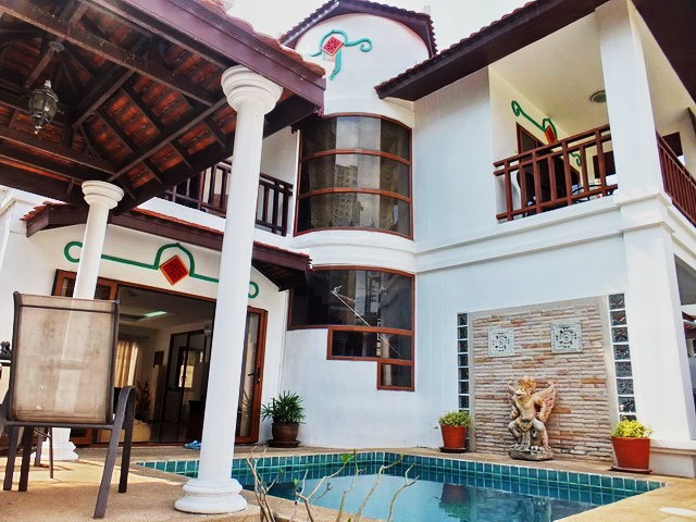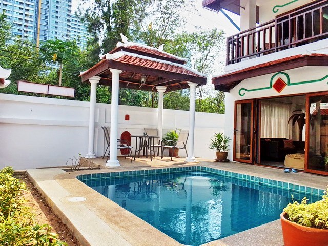 PATTAYA REAL ESTATE: Jombali Pool Villa for sale Jomtien, House for sale Jomien Beach with pool, land size 200 sqm, living area 208 sqm, 3 bedrooms, 3 bathrooms, fully furnished, private pool, terrace, sala, 24-7 security