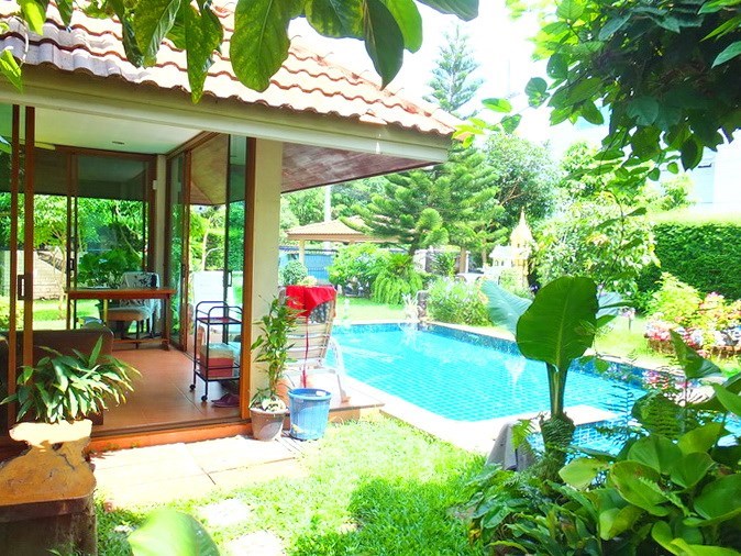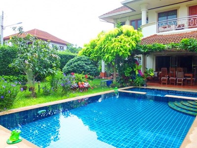 PATTAYA REAL ESTATE: House for sale Na Jomtien Pattaya, land size 752 sqm, living area 300 sqm approx., 5 bedrooms, 5 bathrooms, maid's quarters, European-style kitchen, lawn garden, private swimming pool, carports