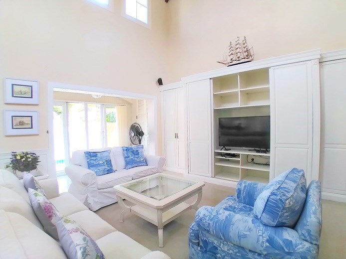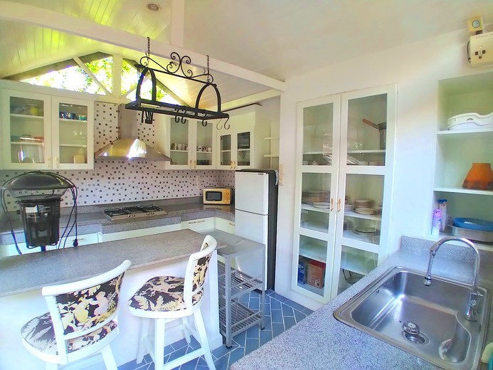 PATTAYA REAL ESTATE: House for Rent East Pattaya, land size 468 sqm, living area 180 sqm, 3 bedrooms, 3 bathrooms, maid’s room, European-style kitchen, fully furnished, private swimming pool, outside kitchen, tropical garden, garage, 24-7 security