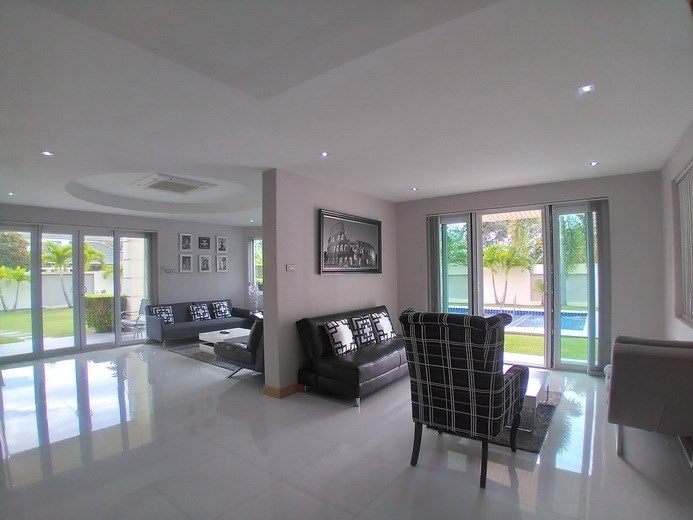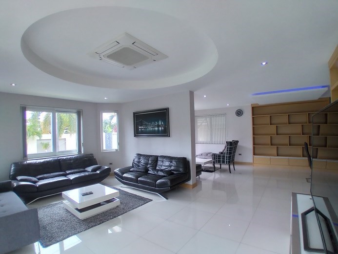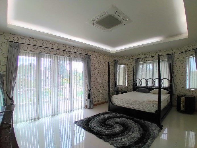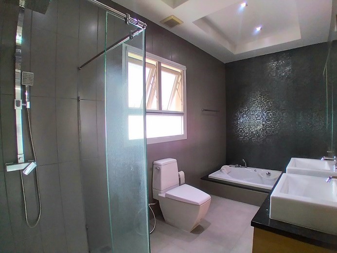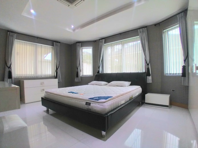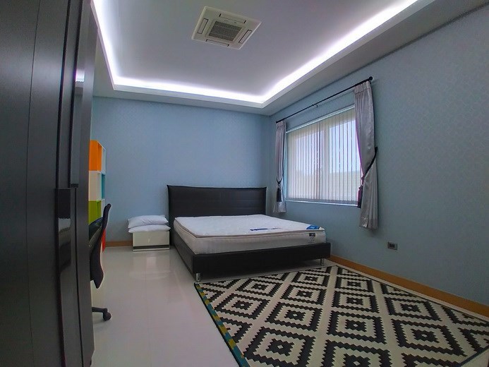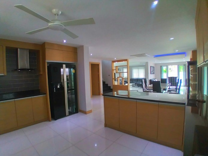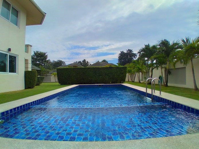 PATTAYA REAL ESTATE: House for rent East Pattaya with private swimming pool, land size 708 sqm, living area 250 sqm approx., 4 bedrooms, 4+1 bathrooms, European-style kitchen, fully furnished, large lawn garden, private swimming pool, carport, 24-7 Security