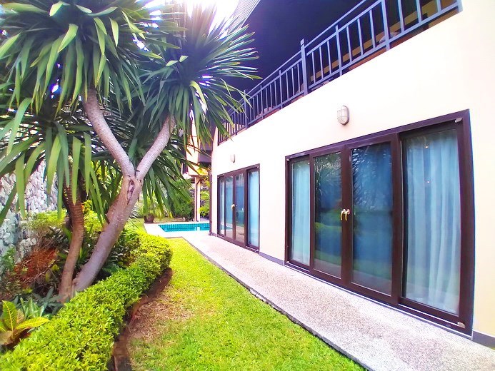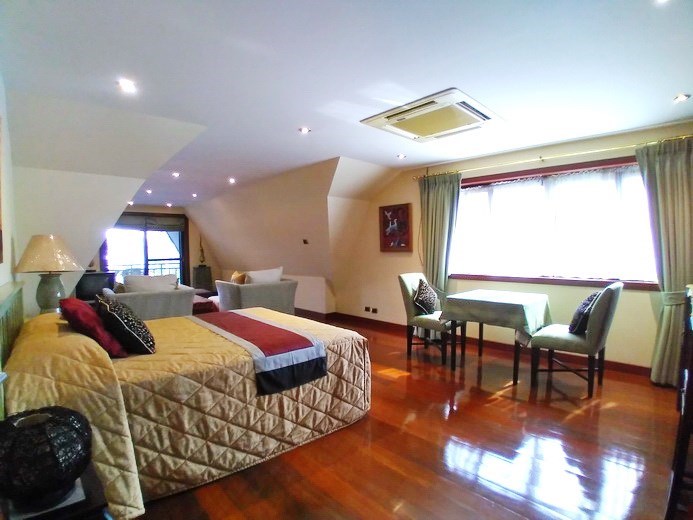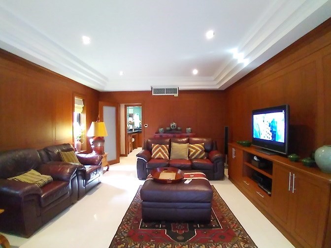 PATTAYA REAL ESTATE: Pool villa for rent Jomtien, land size 560sqm, living area 300 sqm, 4 bedrooms, 5 +1 bathrooms, 1 media room, fully furnished, tropical garden, private swimming pool, laundry room, carpark with automatic gate, 24-7 Security