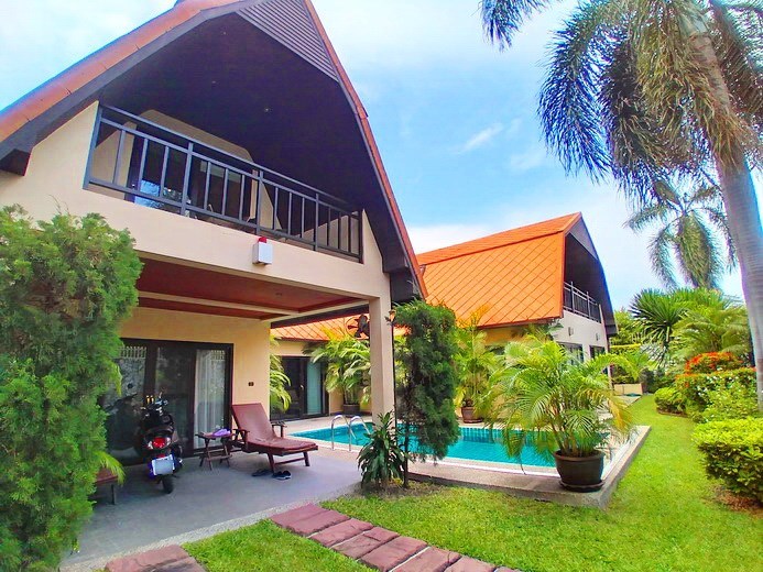 4-bedroom pool villa for rent in Jomtien gated residential community short walk to the beach