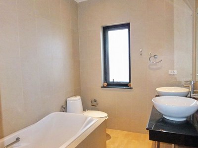 PATTAYA REAL ESTATE: Jomtien Park Villas pool villa for rent, land size 536 sqm, living area 200 sqm approx., 2 bedrooms, 2+1 bathrooms, basement room, European-style kitchen, fully furnished, garden, terraces, private swimming pool, garage, 24-7 security