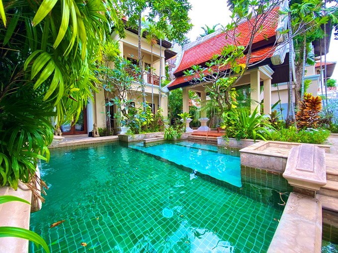 PATTAYA REAL ESTATE: Thai Bali Pool villa for rent Pattaya at View Talay Marina, land size 480 sqm, living area 300 sqm, 3 bedrooms, 3 + 1 bathrooms, European-style kitchens, fully furnished, tropical garden, private swimming pool, 24-7 security