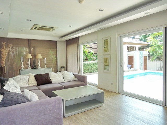 2-Story detached pool villa for rent, located in a residential gated community with direct beach access