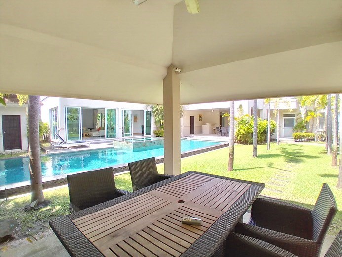 PATTAYA REAL ESTATE: Pool villa for rent The Vineyard 2, 3 bedrooms, 3+1 bathrooms, land size 912 sqm, living area 265 sqm, fully furnished, private swimming pool, covered terrace, Sala, lawn garden, maid's quarters, garage, 24-7 Security