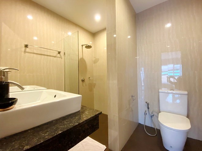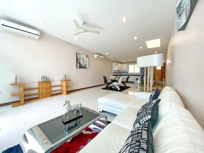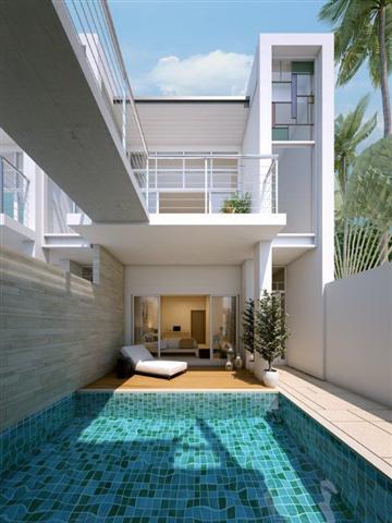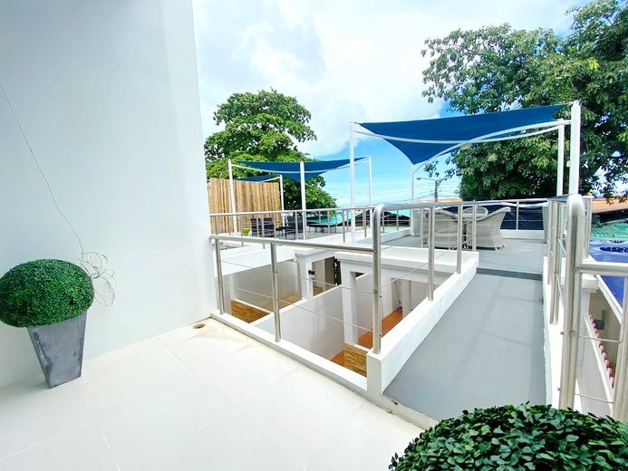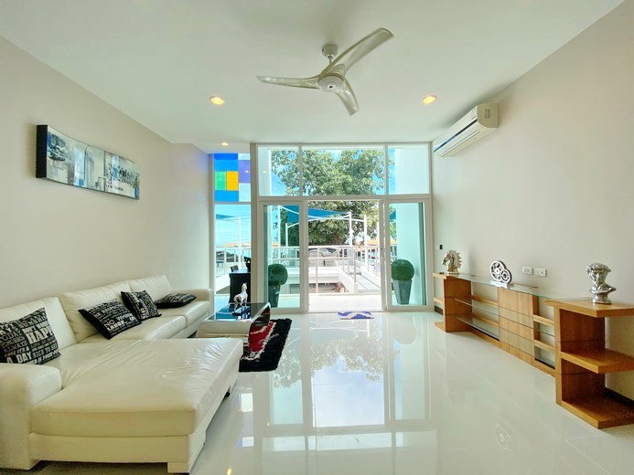 PATTAYA REAL ESTATE: Beach House for Sale direct on Bangsaray Beach, land size 125 sqm, internal living area 120 sqm aprox, 2 bedrooms, 2 bathrooms, 1 guest toilet, living room, European kitchen, private swimming pool, roof garden, next home in Pattaya, garage