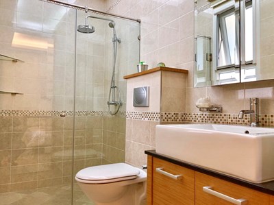 En-suite bathroom with a shower cubicle with rainfall-type shower
