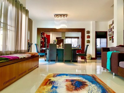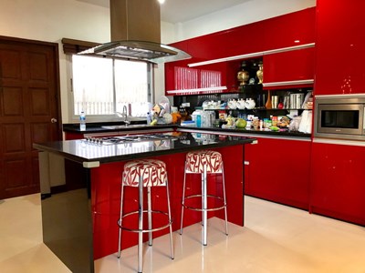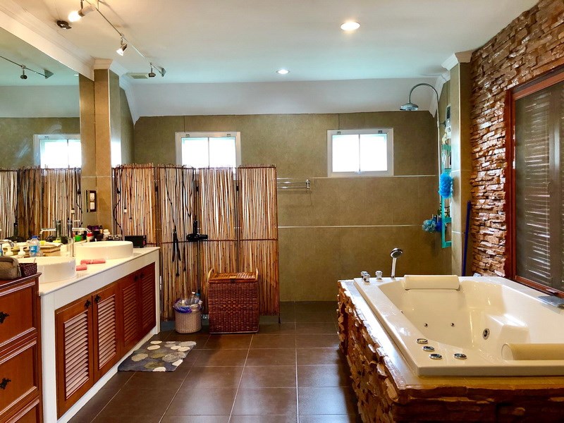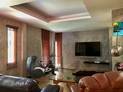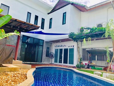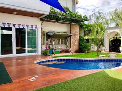 PATTAYA REAL ESTATE: House for Sale East Pattaya with private swimming pool, land size 400 sqm, living area 370 sqm approx., 4 bedrooms, 4 bathrooms, office area, entertainment room, European-style kitchen, Thai kitchen, laundry room, gymnasium, fully furnished, garden, private swimming pool, sala, garage, 24-7 Security