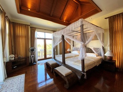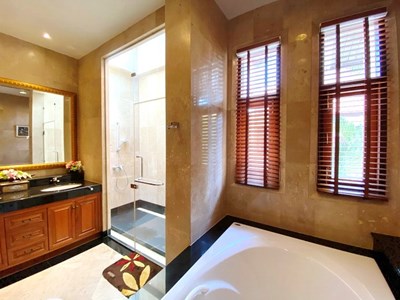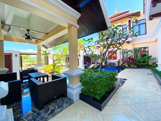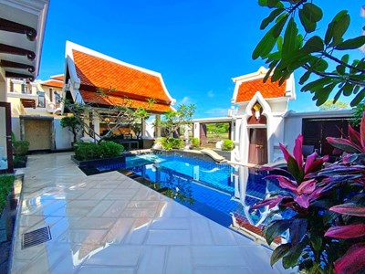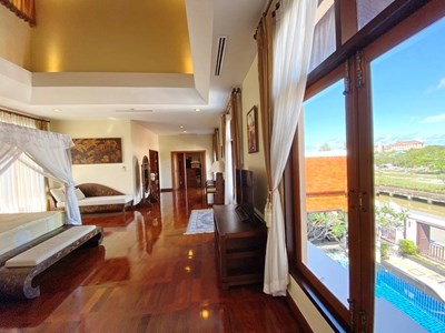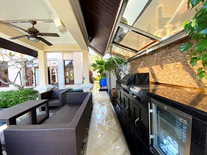PATTAYA REAL ESTATE: Pool villa for sale at View Talay Marina Pattaya, Thai Bali Modern Luxury Pool Villa for sale Pattaya, land size 560 sqm, living area 390 sqm, 4 bedrooms, 3+1 bathrooms, European-style kitchens, fully furnished, tropical garden, private swimming pool, sala with outside kitchen, maid’s suite, garage, boat mooring facilities, 24-7 security