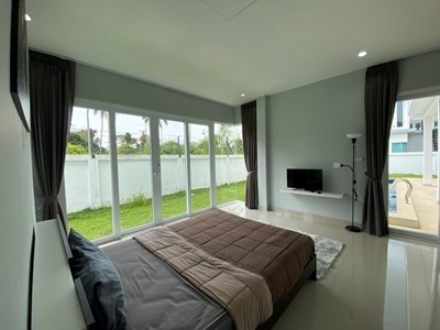 PATTAYA REAL ESTATE: Modern pool villa for sale, land size 600 sqm, living area 460 sqm, 5 bedrooms, 4+1 bathrooms, built-in kitchen, large garden, Private swimming pool, 24-7 Security