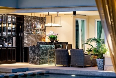 The property also features a spacious lounge terrace, wet bar, and refrigerator, perfect for entertaining guests.