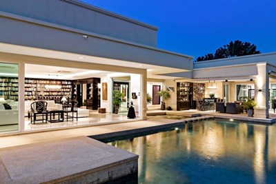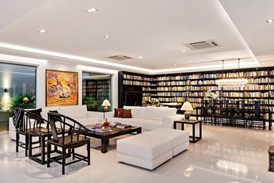 Additional amenities encompass a large office-library-bedroom, meditation room, and a separate guest house strategically positioned in a tranquil corner of the garden.