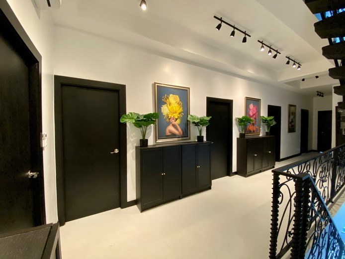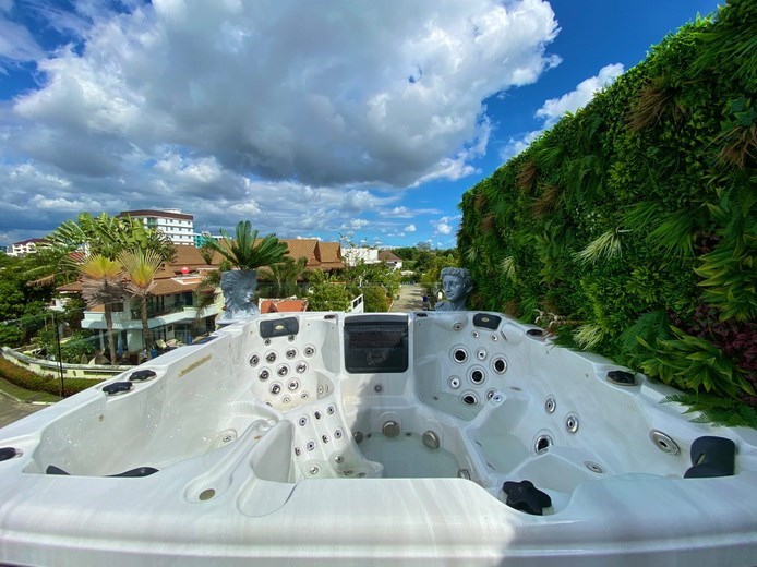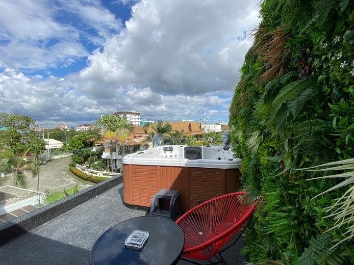PATTAYA REAL ESTATE: Modern-style Luxury pool villa for sale, land size 268 sqm, living area 650 sqm approx., 8 bedrooms, 8 bathrooms, European-style kitchens, fully furnished, tropical garden, private swimming pool, roof-top Jacuzzi tub, 24-7 security, close to Jomtien