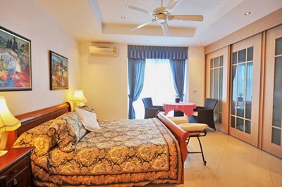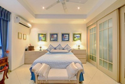 Master bedroom suite with full bedroom furniture and built-in wardrobes.