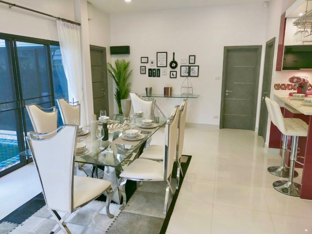 This Villa has a large dining area , large tv area and a stunning european kitchen.