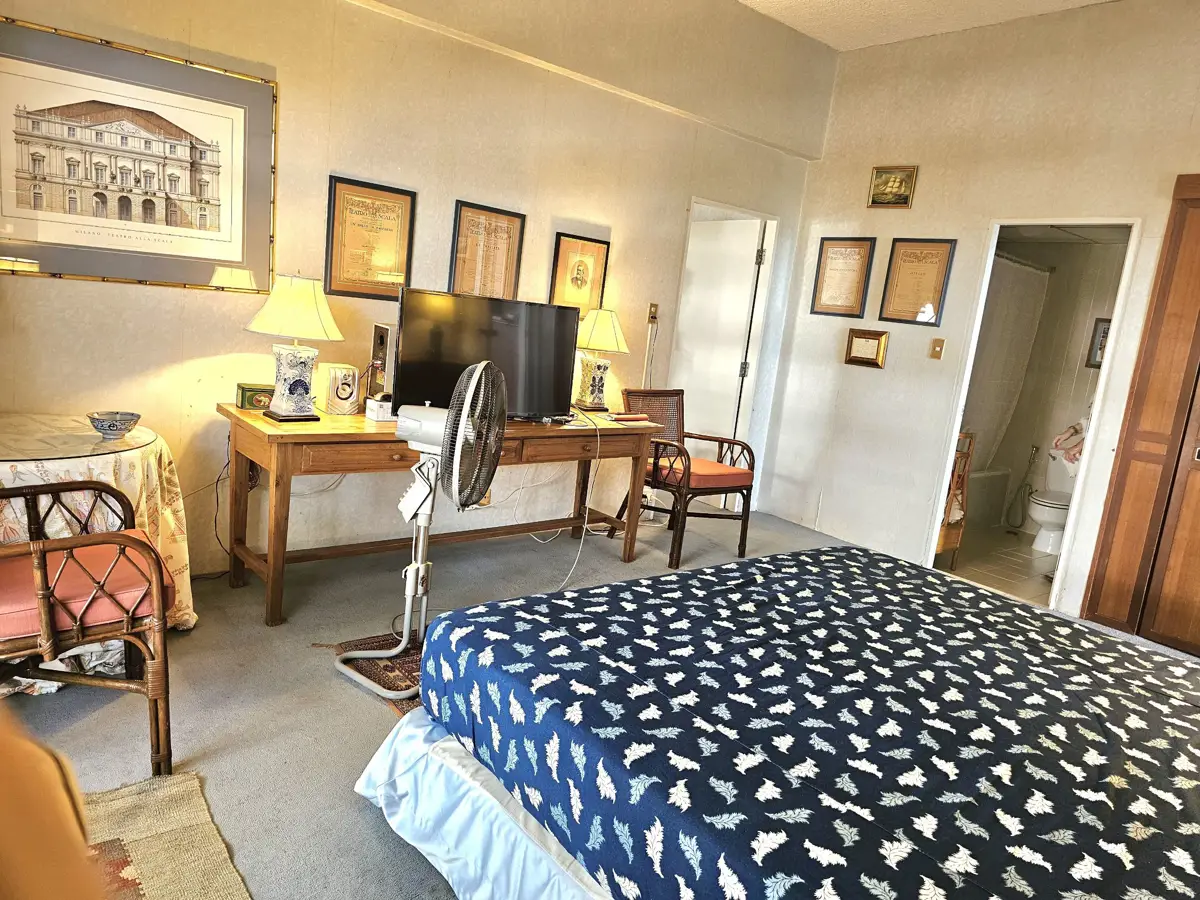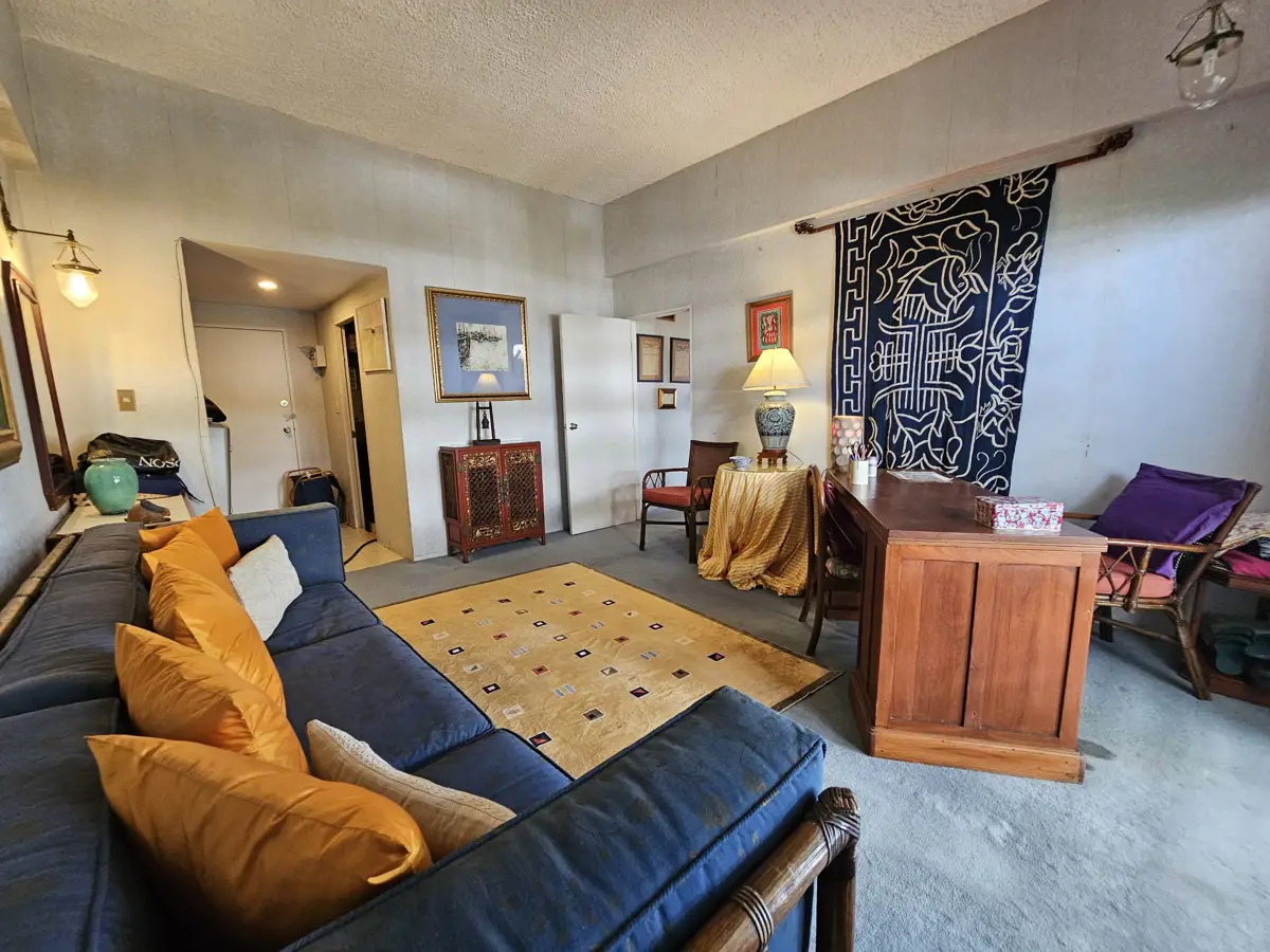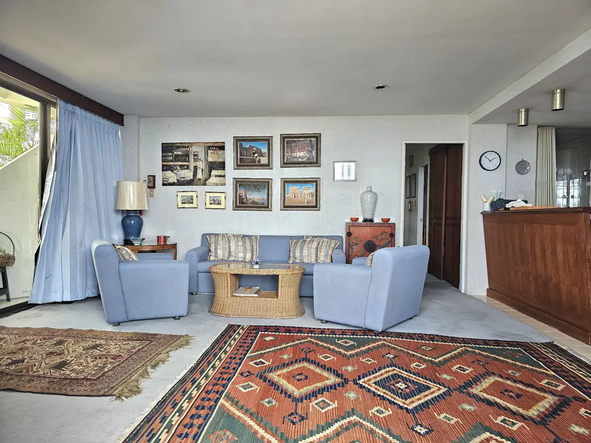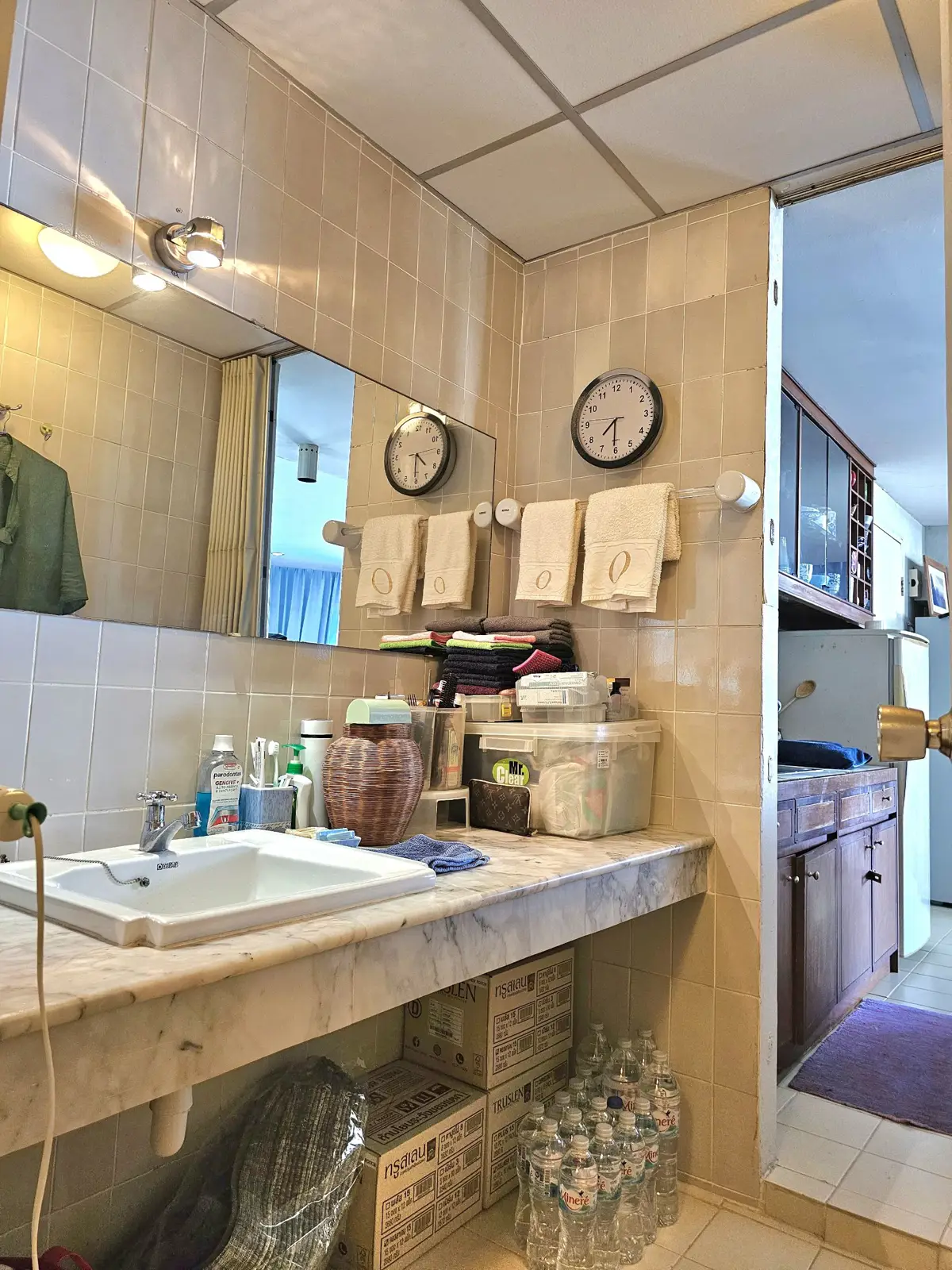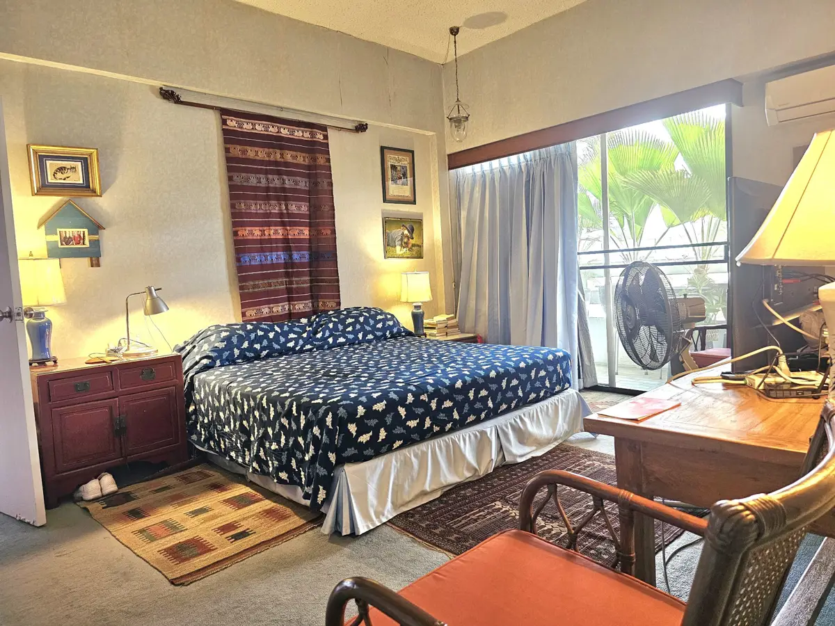 This rare corner unit at Jomtien Condotel offers stunning sea and garden views. The 151 sqm space includes 2 bedrooms (1 lounge), 2 bathrooms, and a large living area. Three connected balconies provide ample outdoor space, perfect for relaxing or entertaining.