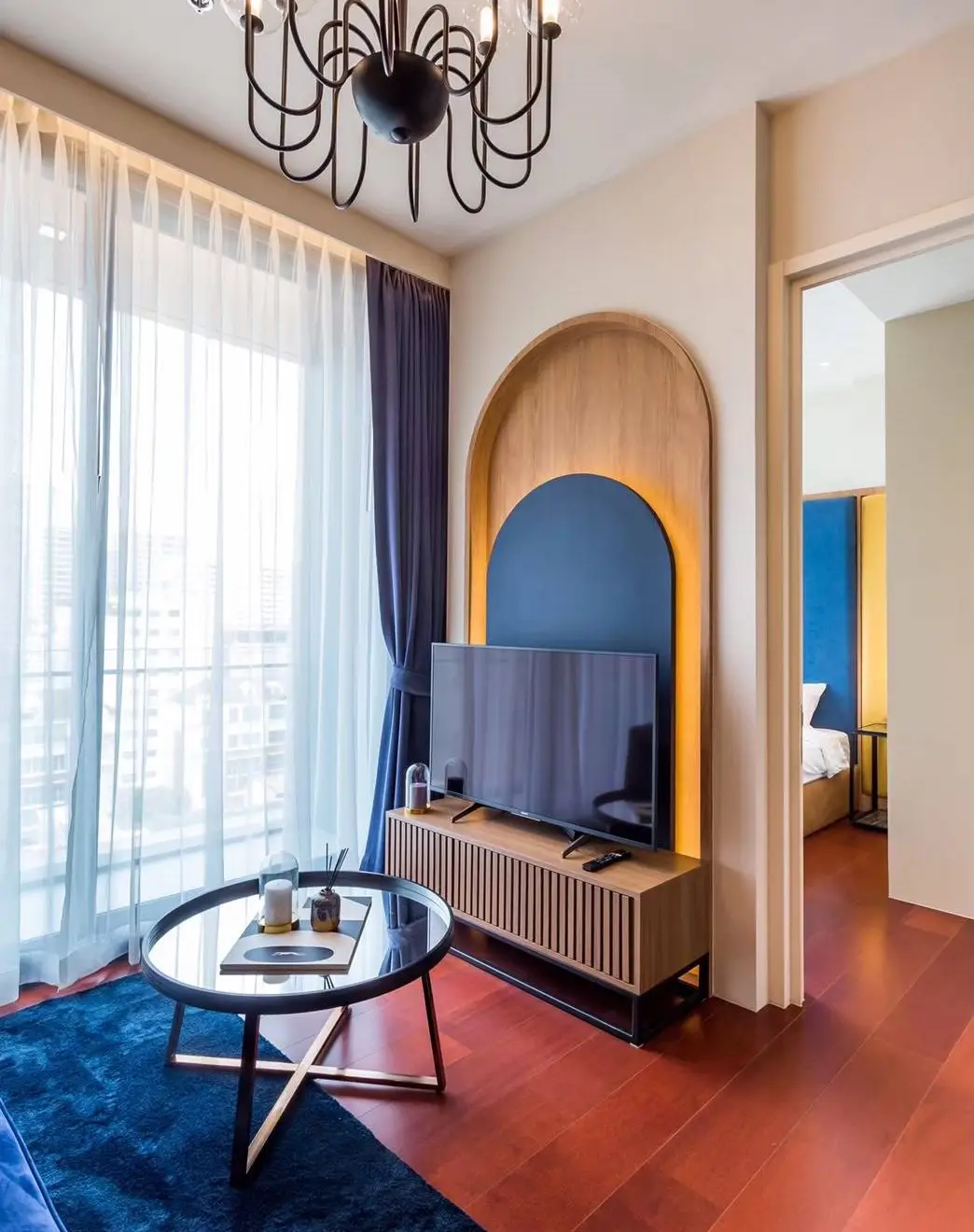 Available to rent is this luxury 1 bedroom, 1 bathroom condo at Khun by Yoo on Thong Lo Road, Bangkok. The nicely furnished and elegantly decorated property measures a comfortable 49.75 Sqm and is situated on the 14th floor with a view of the surrounding area. This project by Sansiri only has 148 units over 27 floors and has all the expected facilities including a beautiful swimming pool, fully equipped gym, sauna, rooftop garden, lounge, cinema, parking and security service.