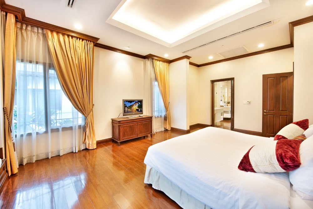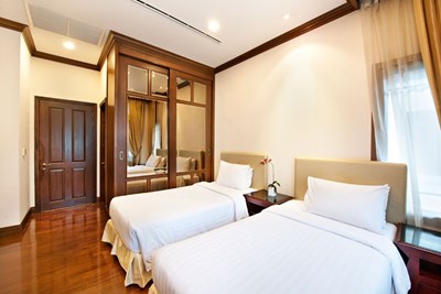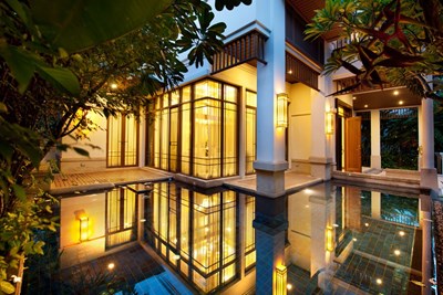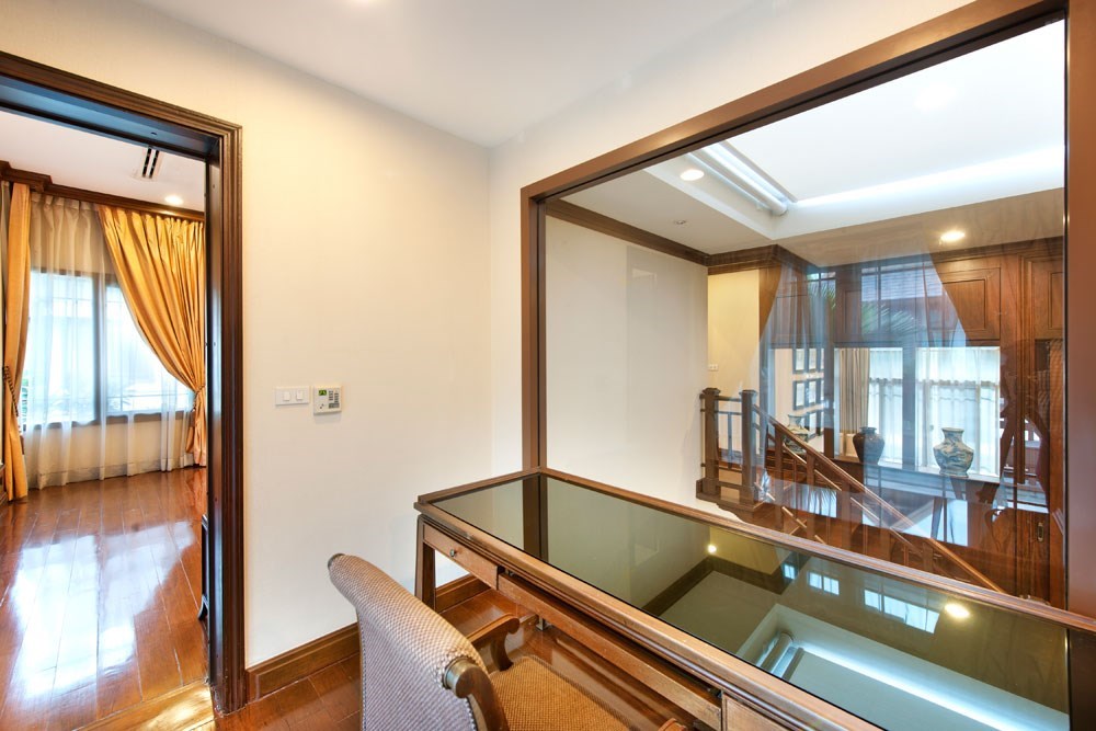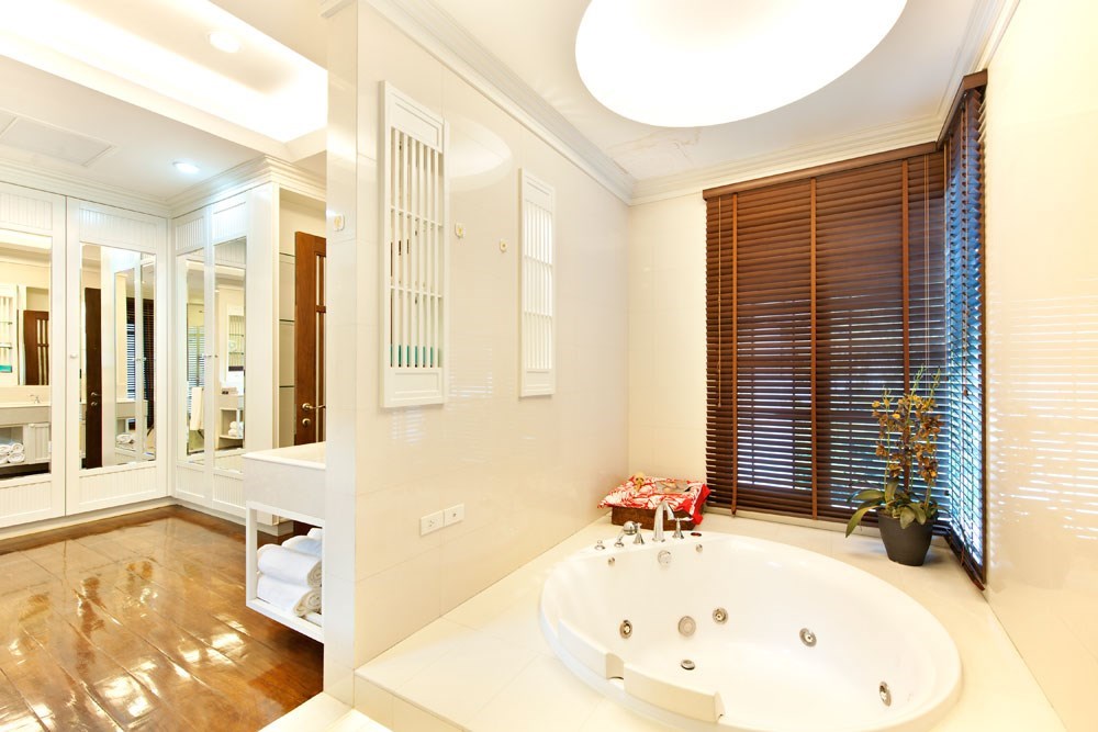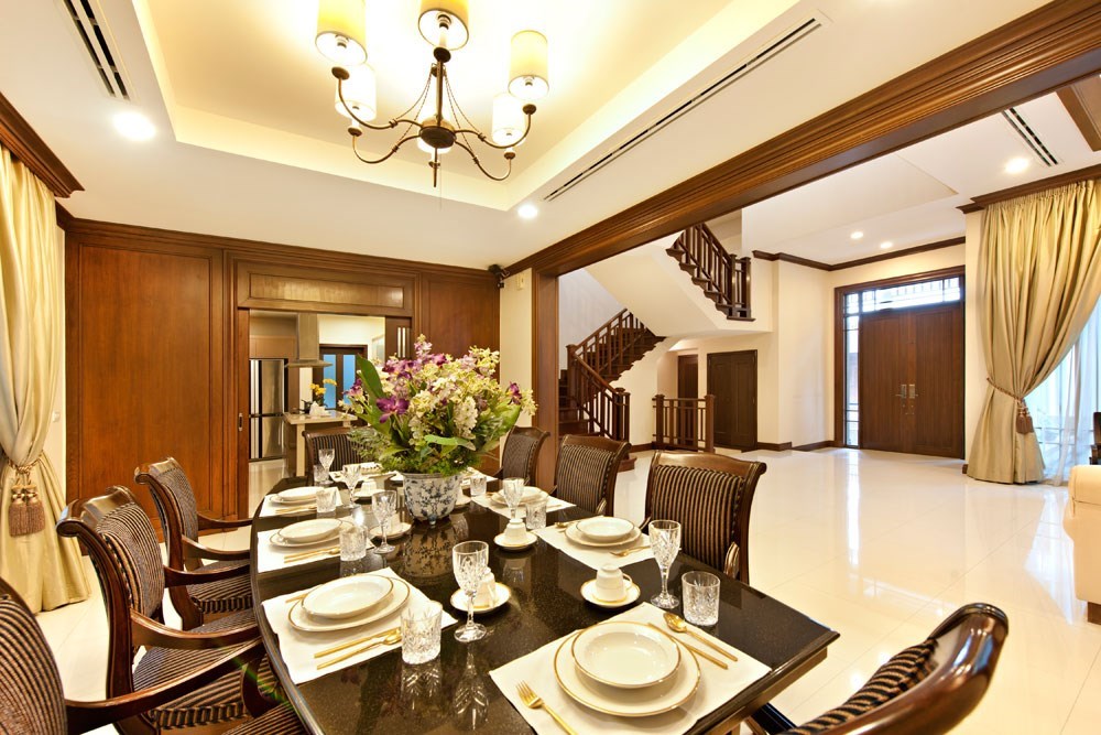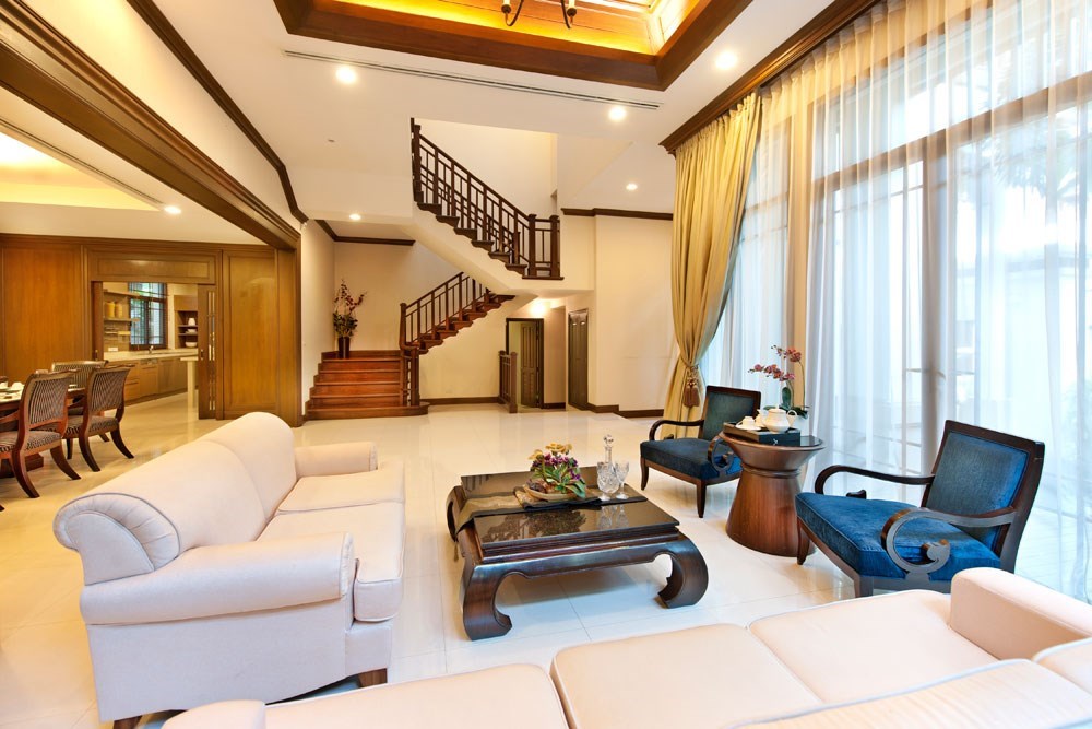You can make one of these lovely Thai style houses your new home in Bangkok. These are detached, 4 bedroom, 5 bathroom homes with 426 sqm of living area. The house has a downstairs guest bedroom, maid's quarters, shoe cabinet, private swimming pool and sun deck, second living room and garden.