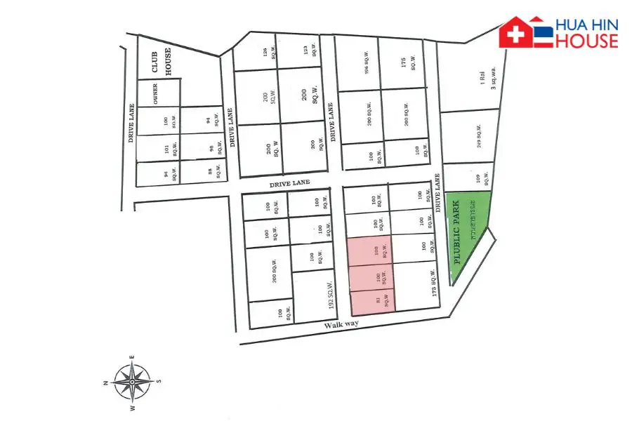 Nestled in a beautifully maintained compound on Soi 112, just a 10-minute drive to Hua Hin downtown! These plots are READY to build your dream villa – water and electricity are all set up! ⚡
