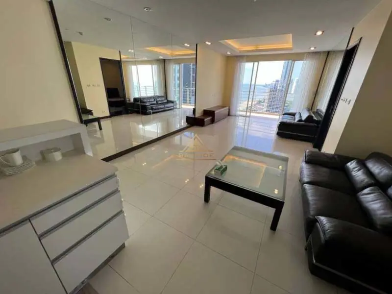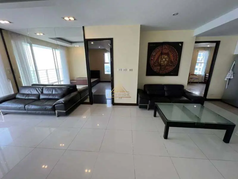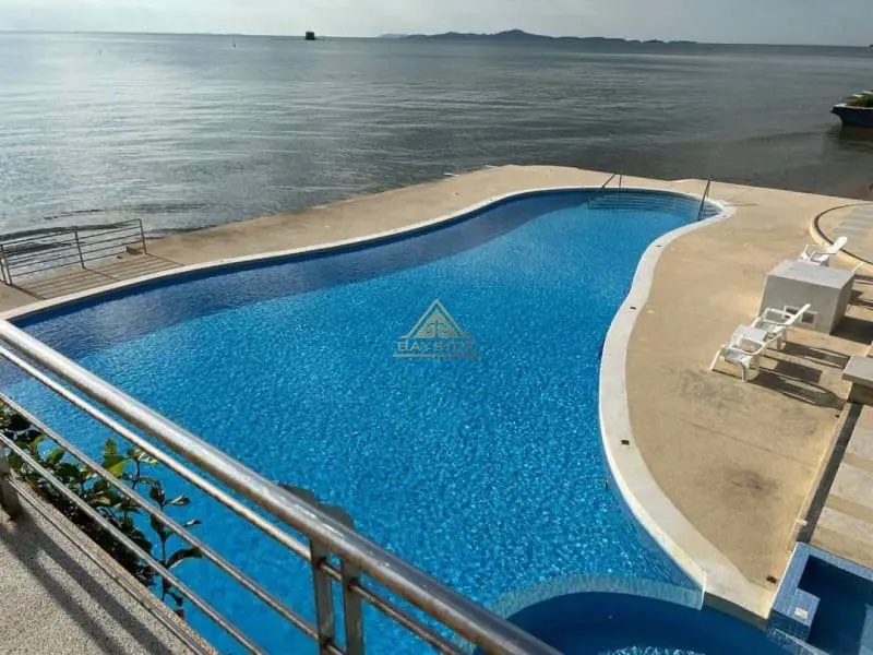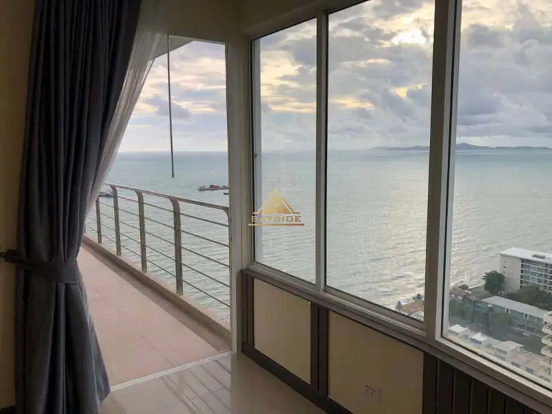 The apartment is located on the thirtieth floor of a multi-storey building in the southern tip of Pattaya. These are 2 bedrooms, 2 bathrooms and a large living room with a kitchen and all this is located in a condominium located on the first line from the sea, with its own access to the beach.