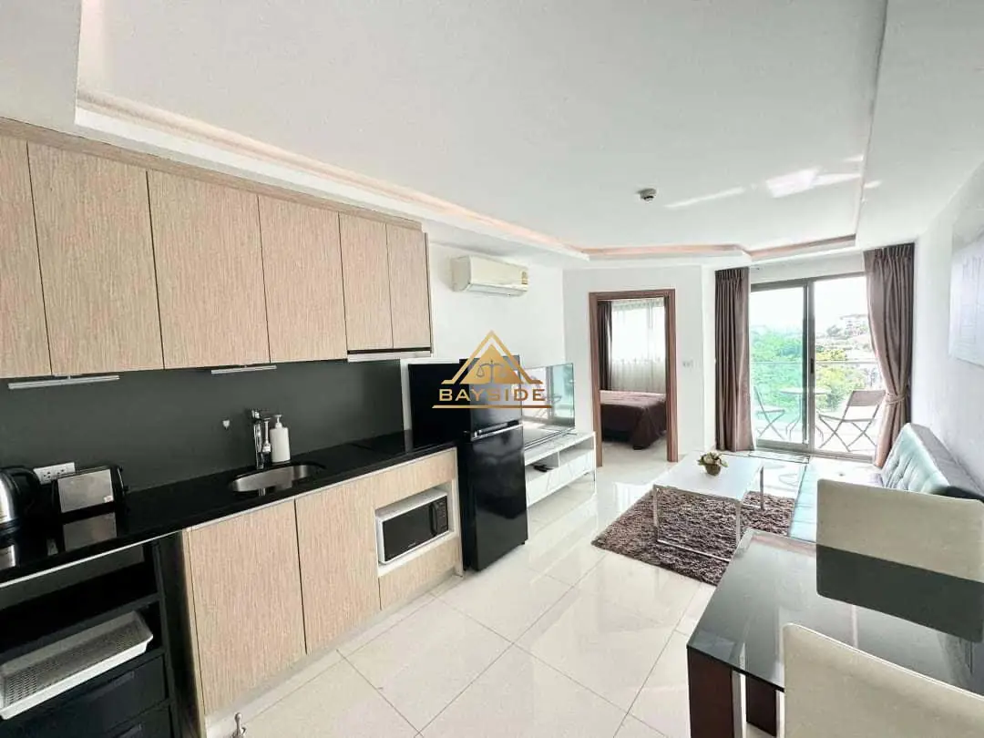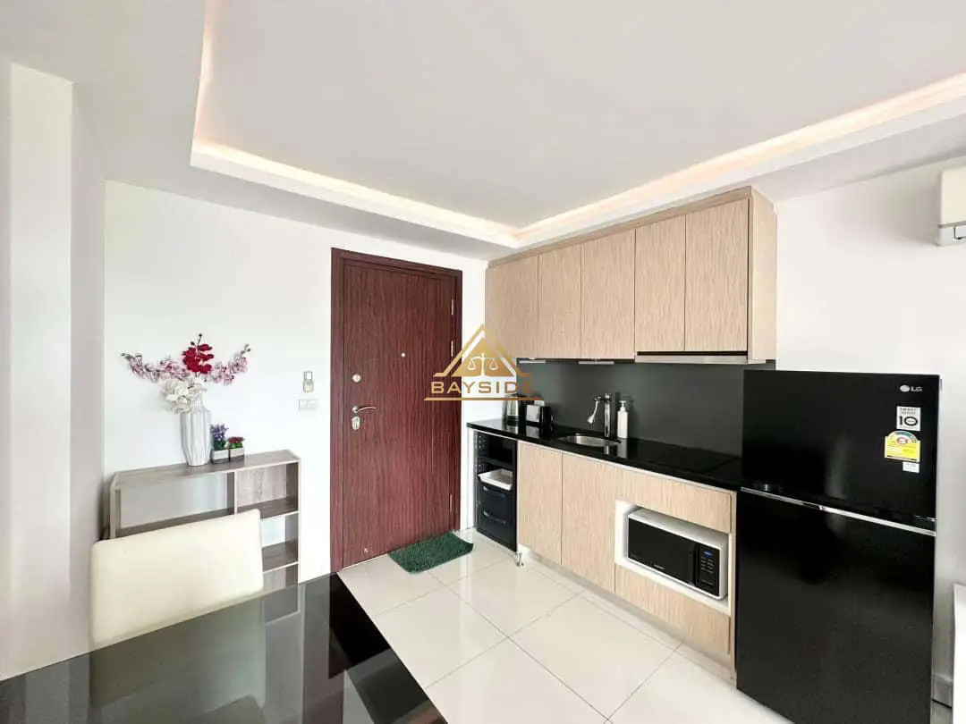 Laguna Beach Resort 3 for sale, the unit is 1 bedroom 1 bathroom, City view on the 7th floor, Fully furnished, European kitchen, Electric Hob, Refrigerator/Freezer, Microwave, Kettle, Toaster, TV, Air conditioner, Sofa, etc.