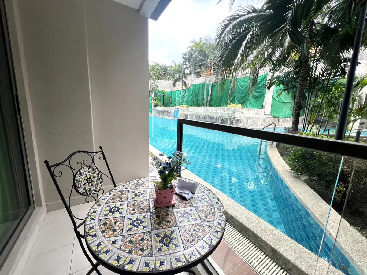 This fully furnished resort-style studio unit is located on the ground floor, offering direct pool views and seamless access to the stunning lagoon pool area.