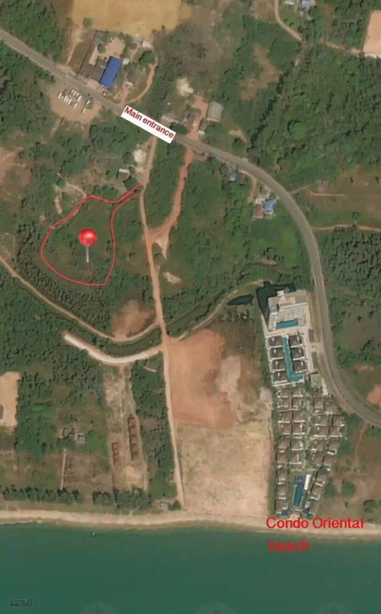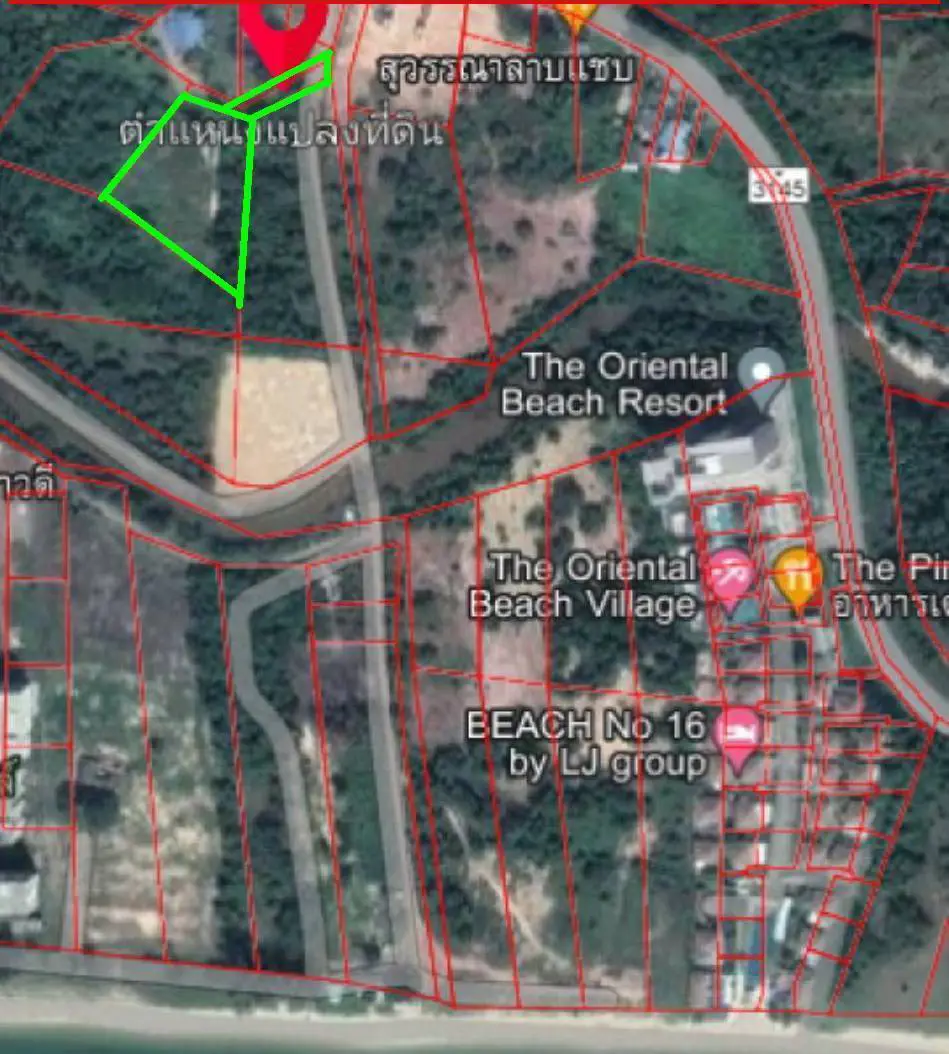 The land which has an area of 2 Rai and 56.7 square wha (3,426.8 sq m) is located only 400 meters from the beach in Chakphong and only 50 meters from road 3145.