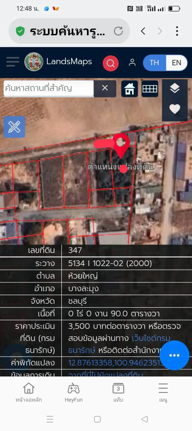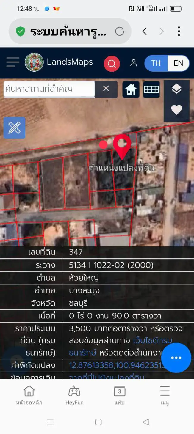 For sale: 2 plots of land, including title deed, 190 square wah, selling for 2.1 million baht, transfer 50/50, near Chak Nok Reservoir, Huai Yai Subdistrict, Bang Lamung District, Chonburi Province.