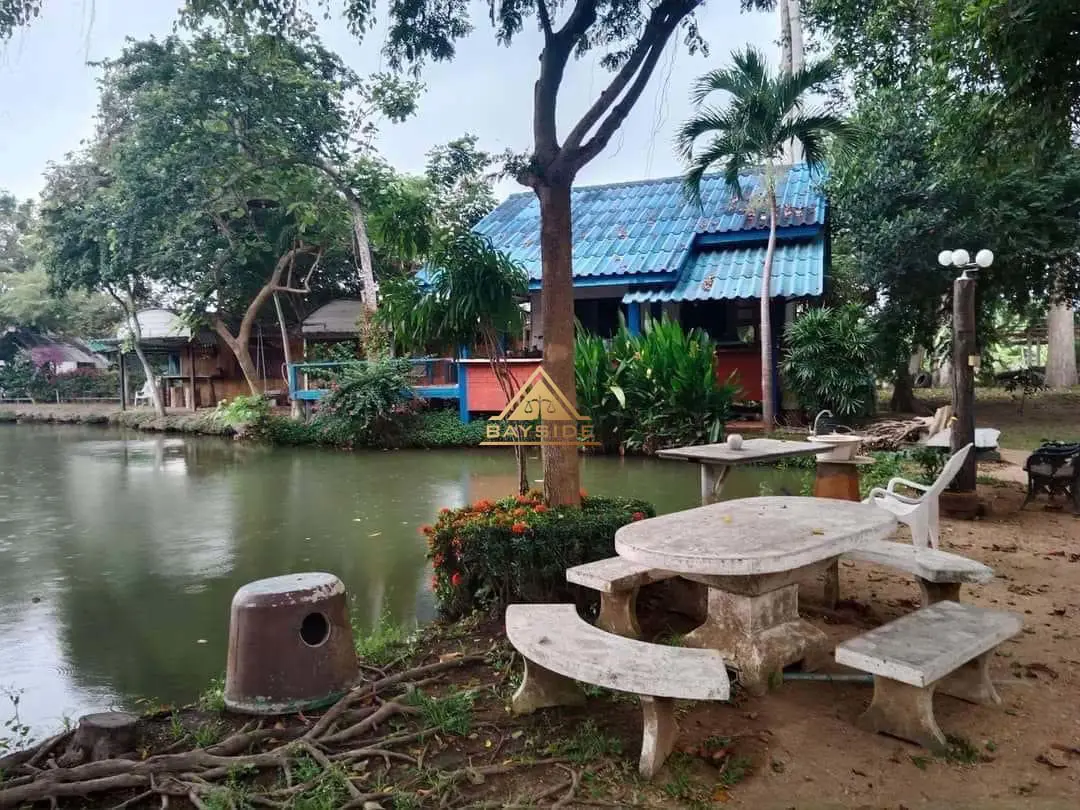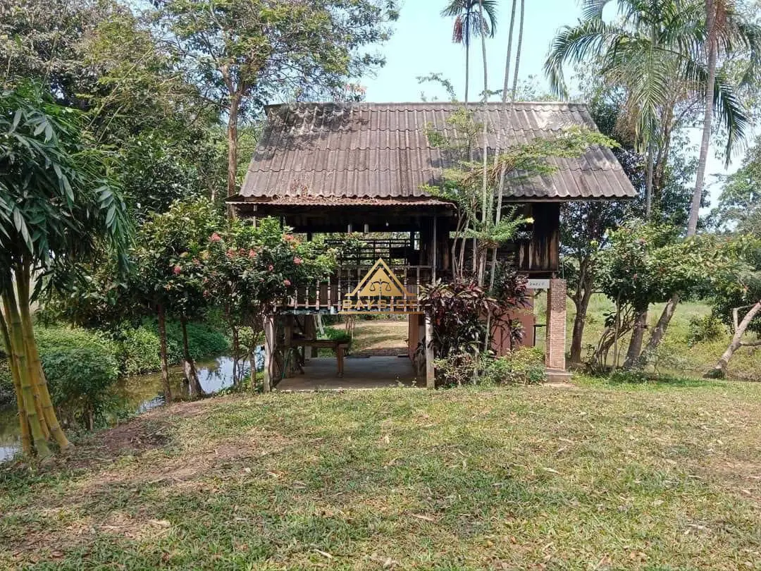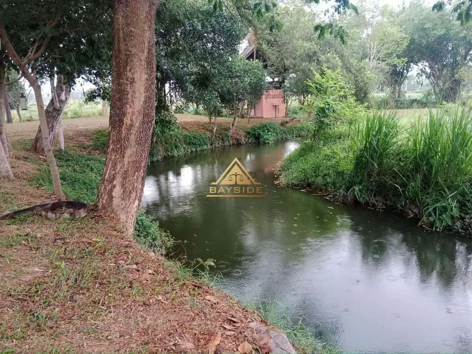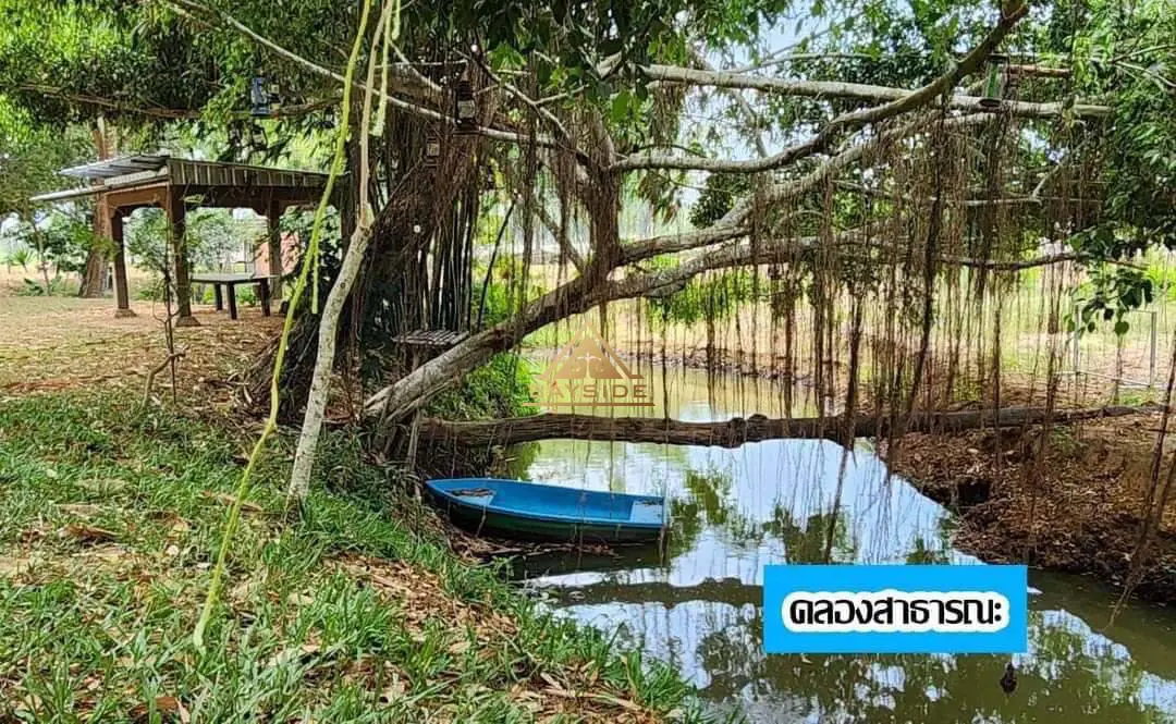 Beautiful land for sale with a shady atmosphere Complete with fishing, camping and dancing businesses, area 2 rai 3 ngan 40 sq m. The back is next to a natural canal with water all year round. There is about 1 rai of land growing at the end of the rice field next to a natural canal.