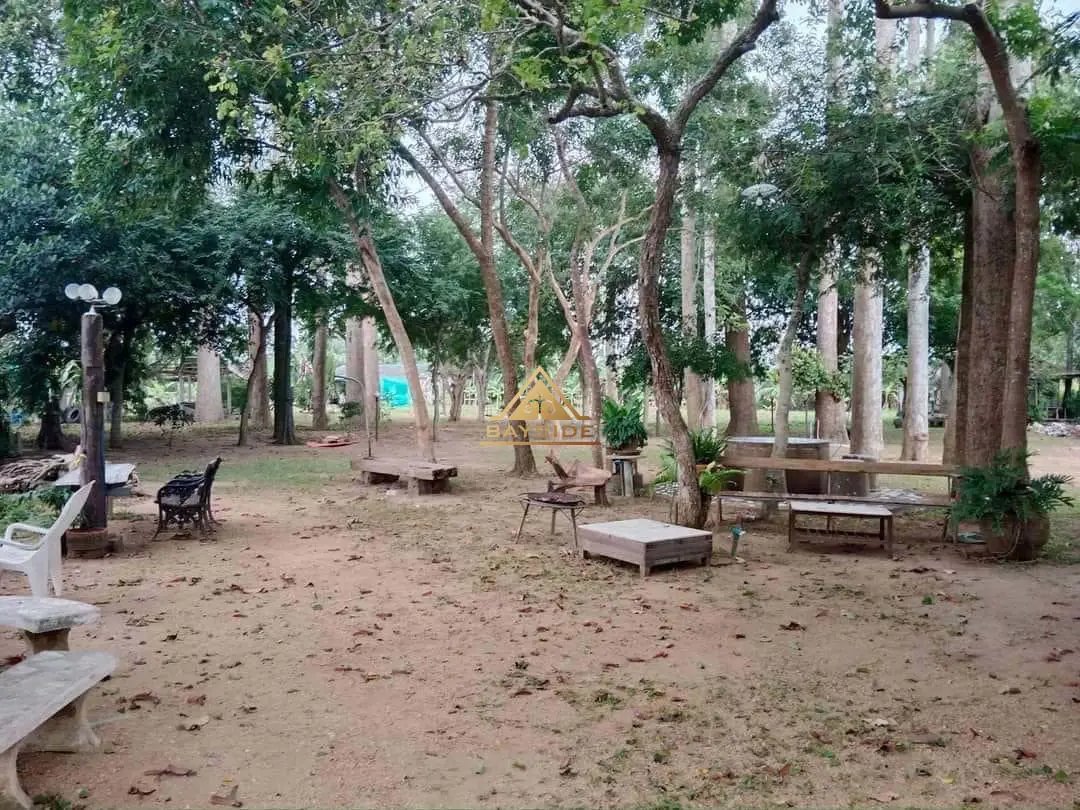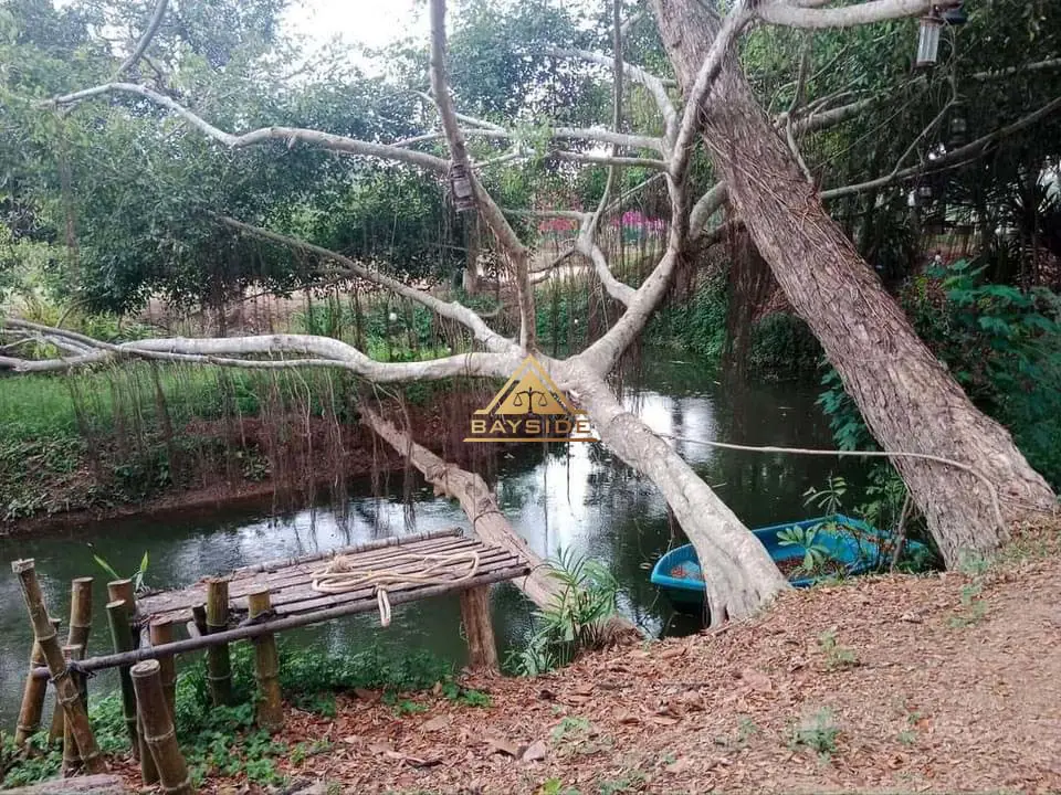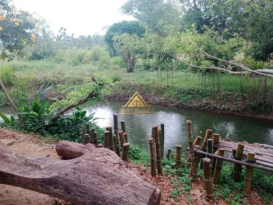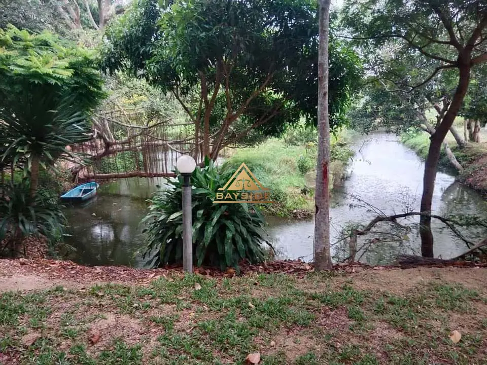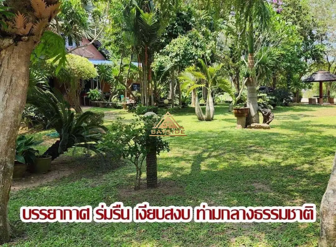 Beautiful land for sale with a shady atmosphere Complete with fishing, camping and dancing businesses, area 2 rai 3 ngan 40 sq m. The back is next to a natural canal with water all year round. There is about 1 rai of land growing at the end of the rice field next to a natural canal.