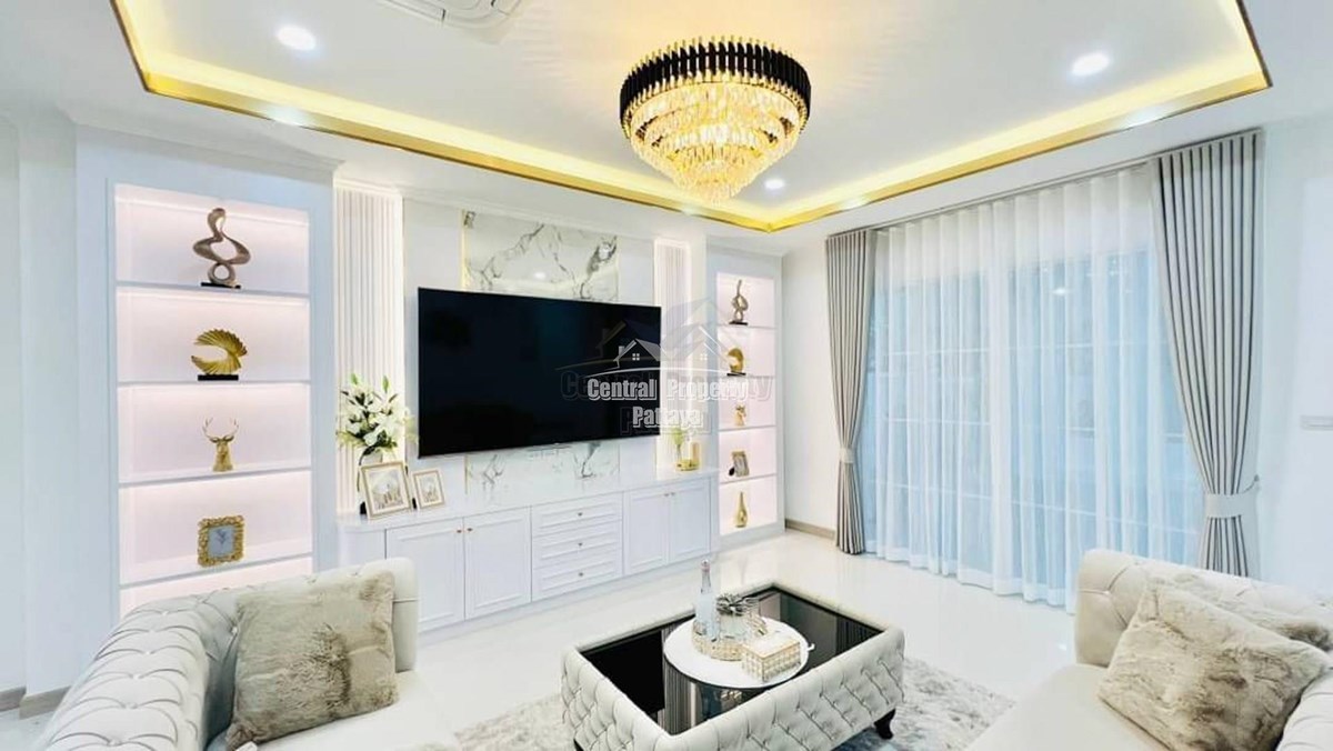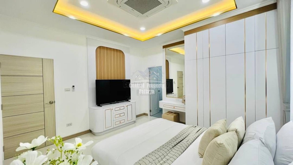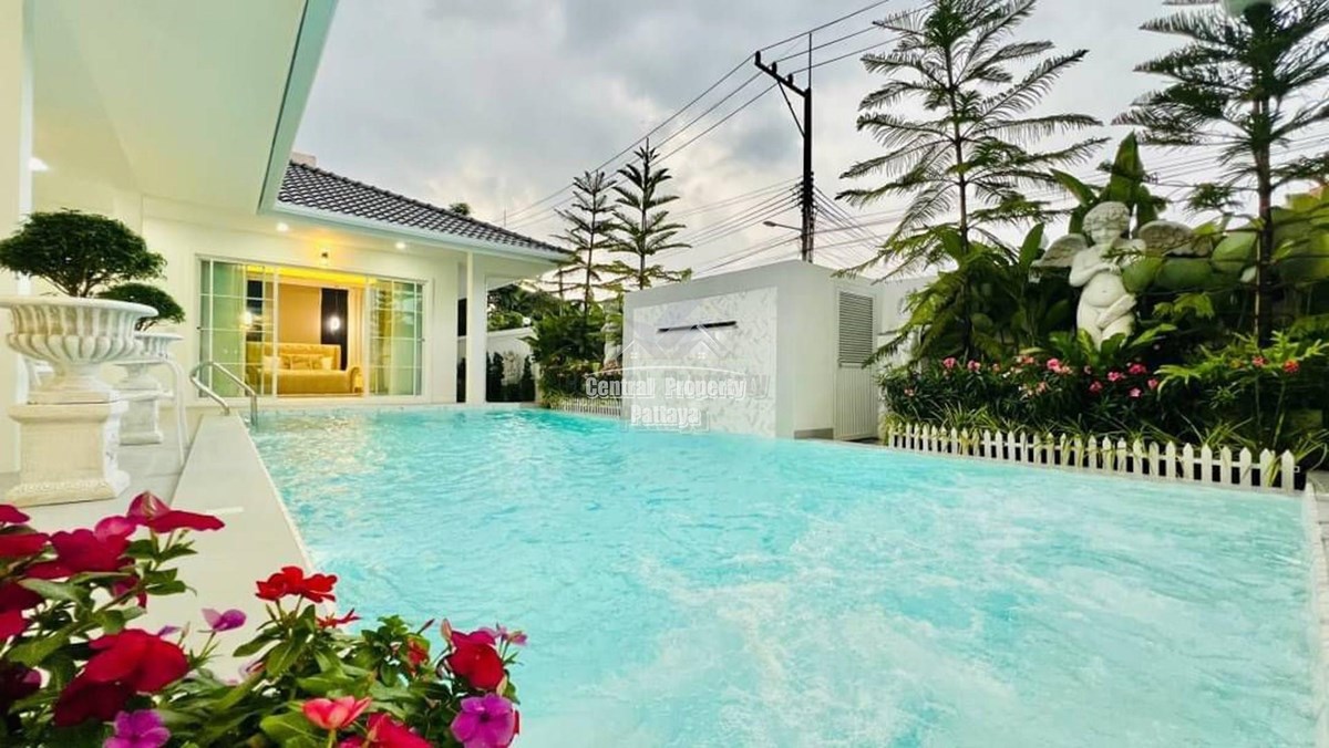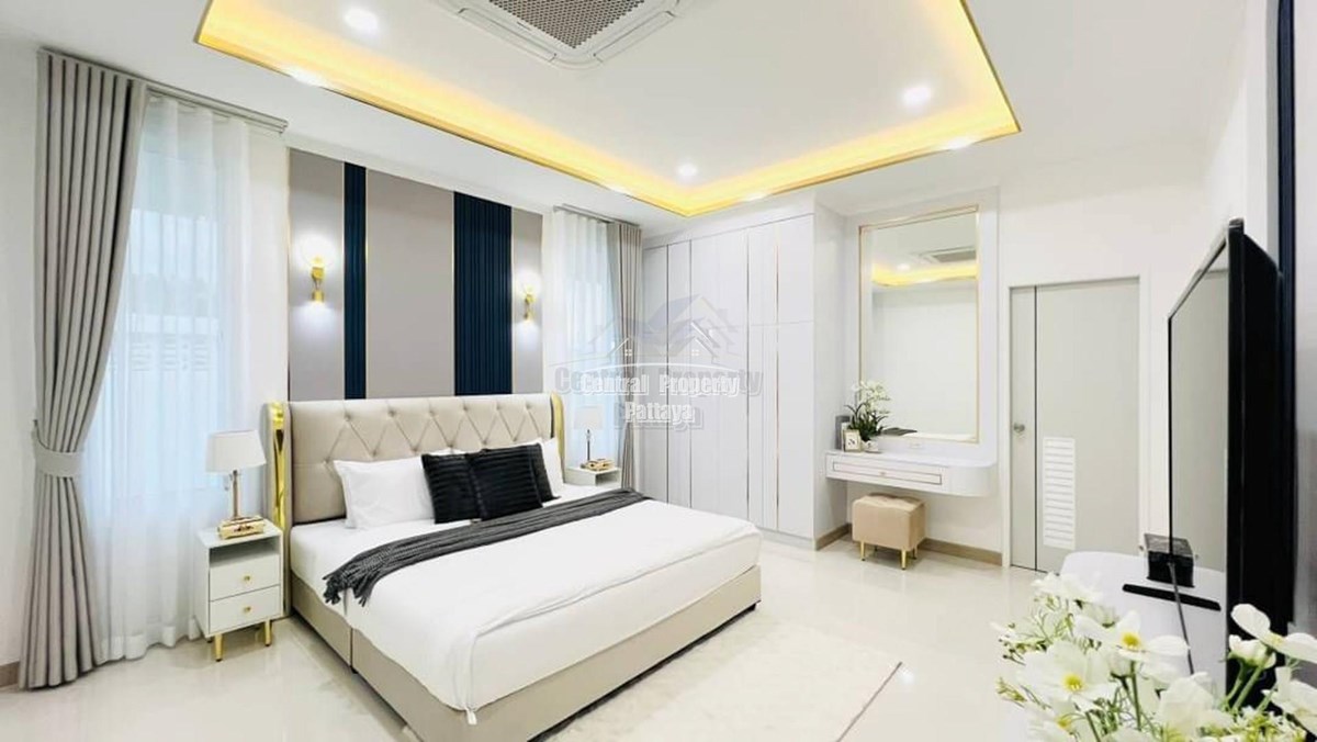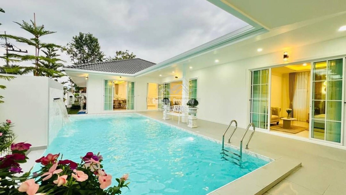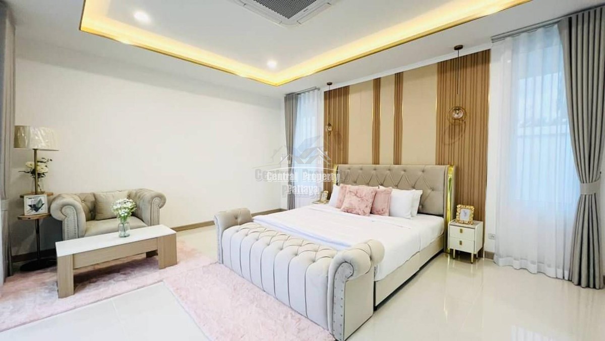 Since I cannot see images, I'll create a detailed description of a 600sqm pool villa with 5 bedrooms and 6 bathrooms. Feel free to provide additional details if you'd like me to incorporate specific elements from the picture. --- Luxury Pool Villa - 600sqm of Elegance and Comfort Welcome to this sprawling 600sqm luxury pool villa, a perfect blend of modern architecture and serene living. The villa boasts a large private swimming pool, surrounded by lush landscaping, offering an ideal oasis for relaxation or entertaining. Whether you're enjoying a refreshing dip in the pool or lounging by the water on the stylish outdoor furniture, the space promises an idyllic retreat. Interior Features: Five Spacious Bedrooms: Each of the five bedrooms is generously sized, filled with natural light, and designed with luxury in mind. The master suite features a king-sized bed, a private balcony overlooking the pool, and an en-suite bathroom with a large soaking tub and separate rainfall shower. Six Modern Bathrooms: The villa has six well-appointed bathrooms, with high-end finishes including marble countertops, double sinks, and walk-in showers. Each bathroom is thoughtfully designed to offer maximum comfort and privacy. Expansive Living Areas: The open-plan living area is the heart of the home, with high ceilings and elegant floor-to-ceiling windows that frame stunning views of the pool. A large sectional sofa invites guests to unwind, while the adjacent dining area features a custom wooden table that seats ten. Fully Equipped Kitchen: The state-of-the-art kitchen includes stainless steel appliances, an island with bar seating, and plenty of storage. It's perfect for both casual family meals and gourmet cooking. Home Theater/Entertainment Room: A cozy entertainment space, complete with a large screen and plush seating, is ideal for movie nights or watching your favorite sports. Outdoor Features: Private Pool: The large swimming pool is the focal point of the outdoor area. It’s surrounded by a sun deck with loungers, a shaded lounge area, and an outdoor shower for rinsing off after a swim. Garden and Outdoor Dining: The villa's landscaped garden features tropical plants, offering a peaceful escape. There’s also a shaded outdoor dining area, equipped with a BBQ grill, perfect for alfresco meals. Ample Parking: A private driveway with space for multiple vehicles ensures convenience for you and your guests. This villa is not only a place to live but an experience of luxury, privacy, and tranquility, ideal for families or groups looking for an unforgettable stay. Whether it’s relaxing by the pool or enjoying the beautifully designed interiors, this villa promises a lifestyle of elegance.