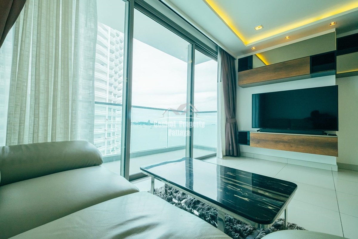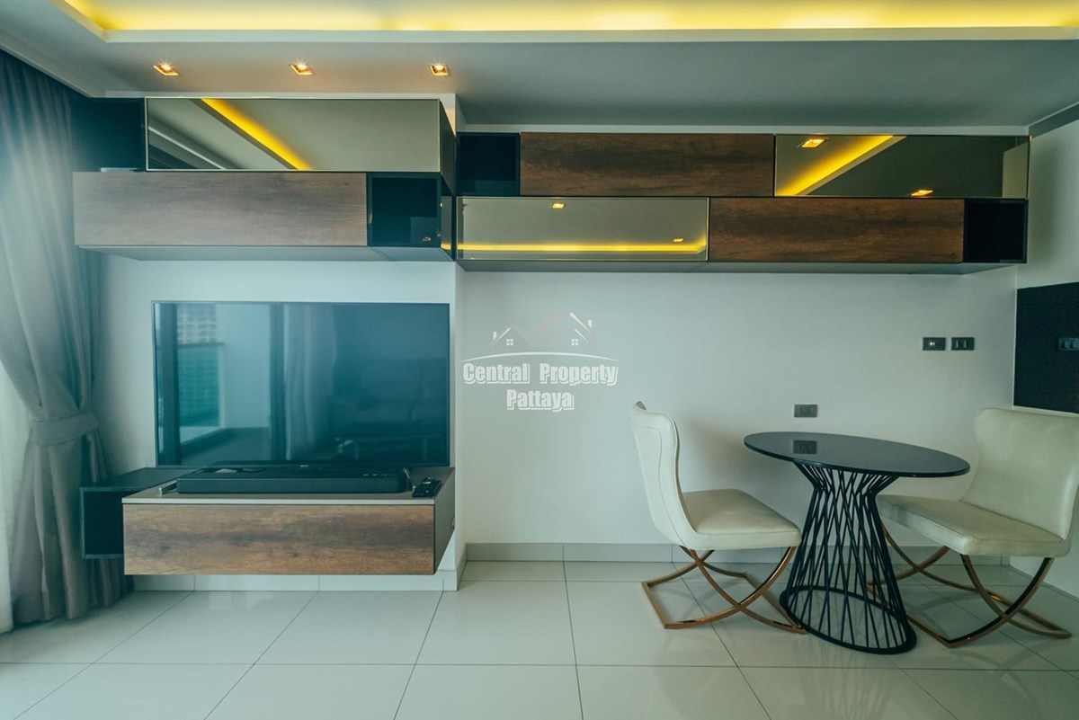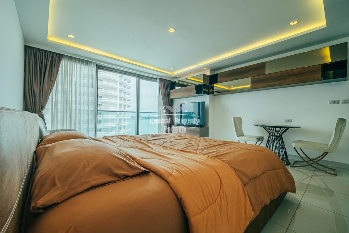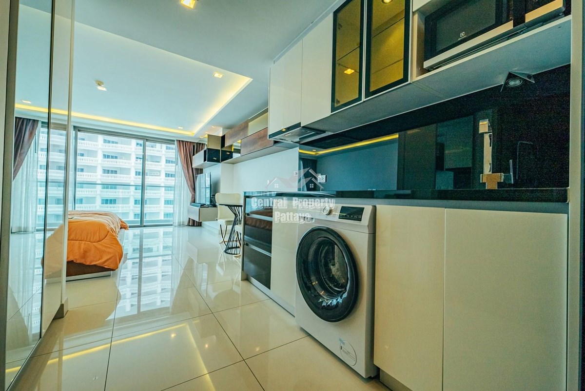 Superb studio for sale in Thai/Company name in the luxurious Wongamat tower. This unit is fully furnished with built in wardrobes and a professional grade European kitchenette. The bathroom is spacious and contemporary, and the spacious living area benefits from expansive, uninterrupted sea views from the large balcony.