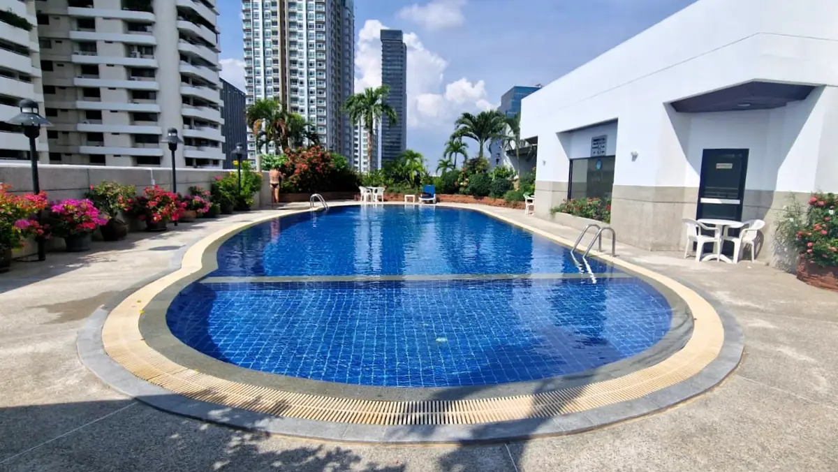 Liberty Park 2 condominium has a swimming pool, squash court, table tennis, snooker table, playroom and large gym and is nicely located at the quieter end of Sukhumvit 11. This area is well known for its nightlife, with numerous bars, restaurants and clubs, as well as coffee shops and a supermarket. Nana BTS Skytrain Staion, NIST International School and Bumrungrad International Hospital are within easy reach.